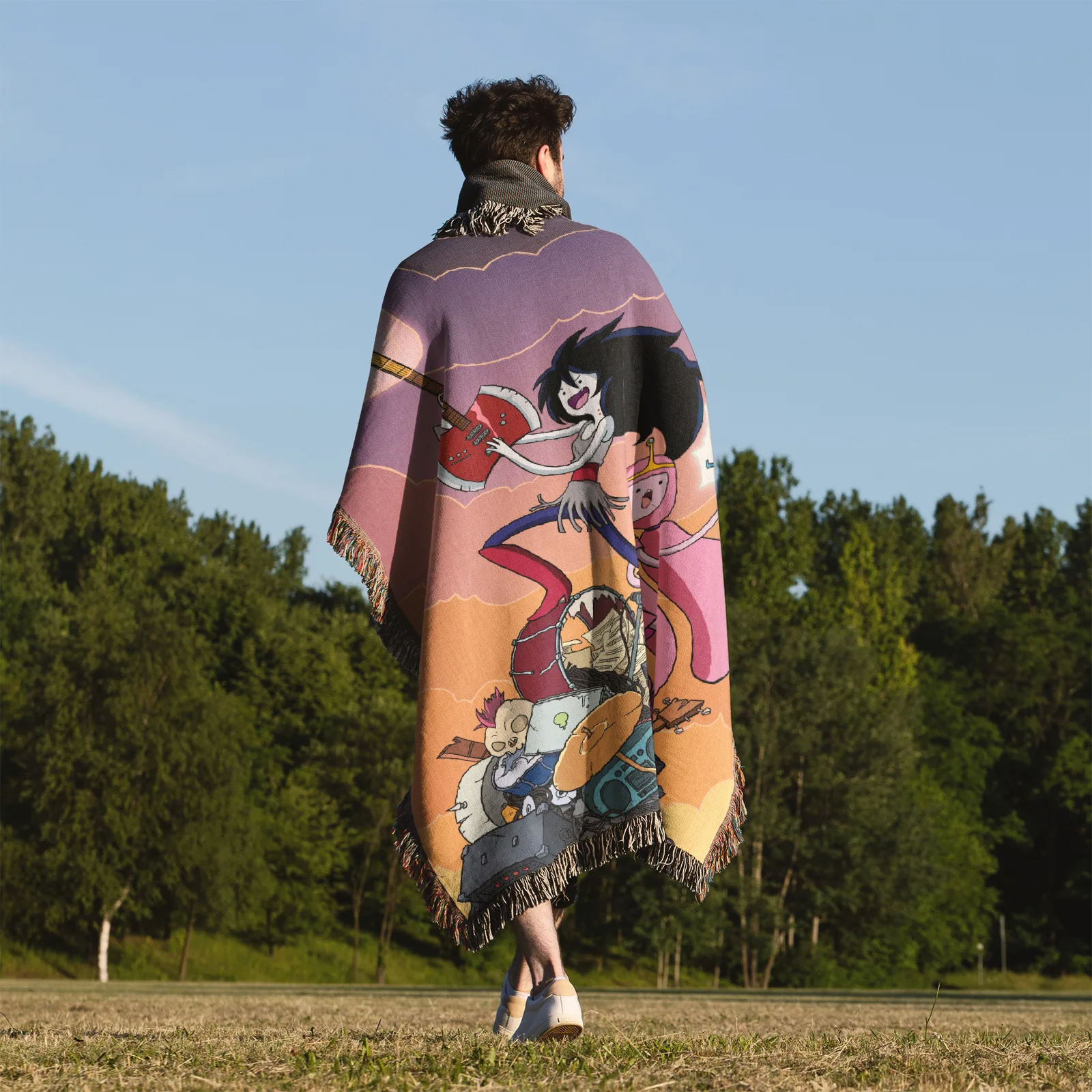 Adventure Time woven tapestry throw blanket, featuring bright wall rug design and room decor, ideal as a perfect gift for Adventure Time lovers.