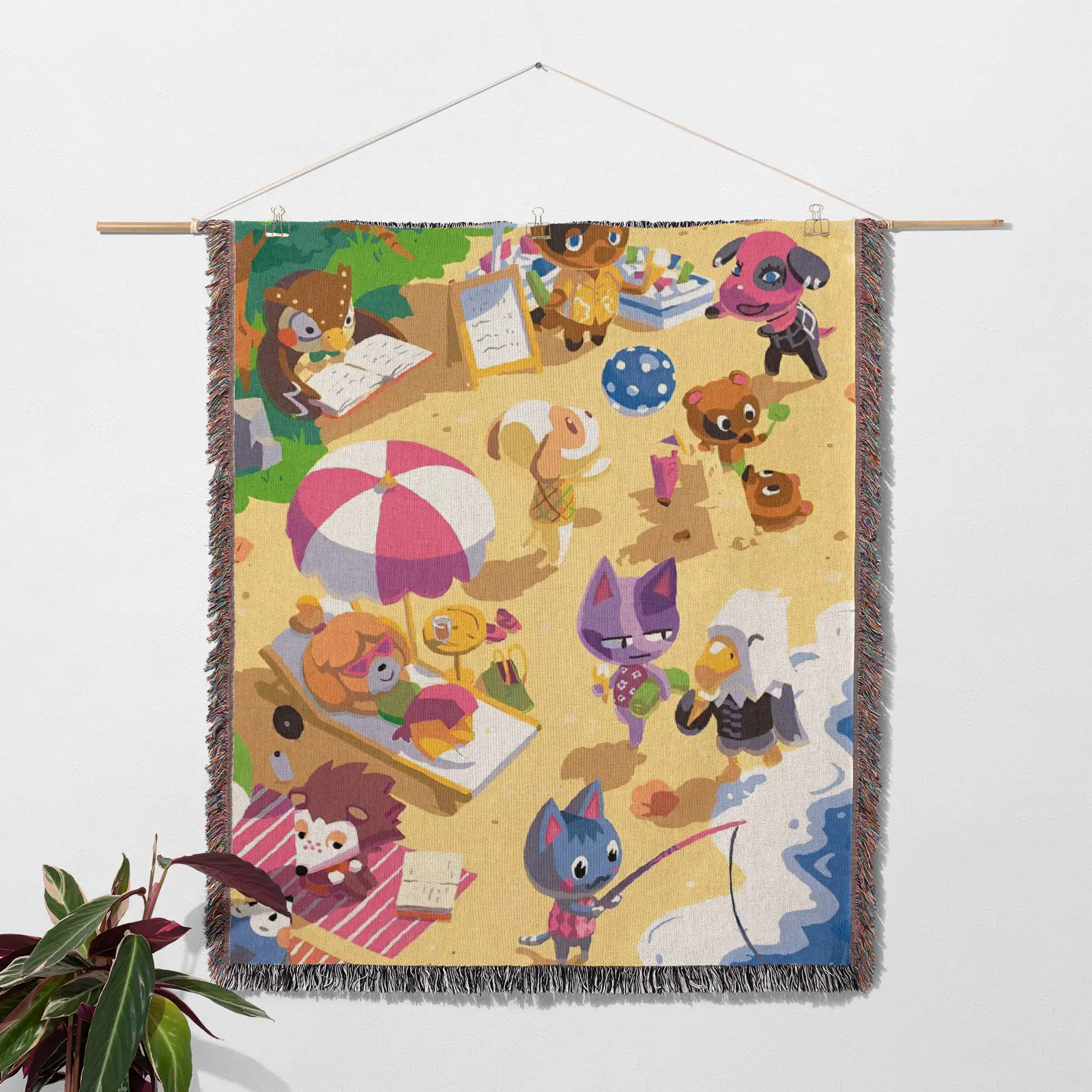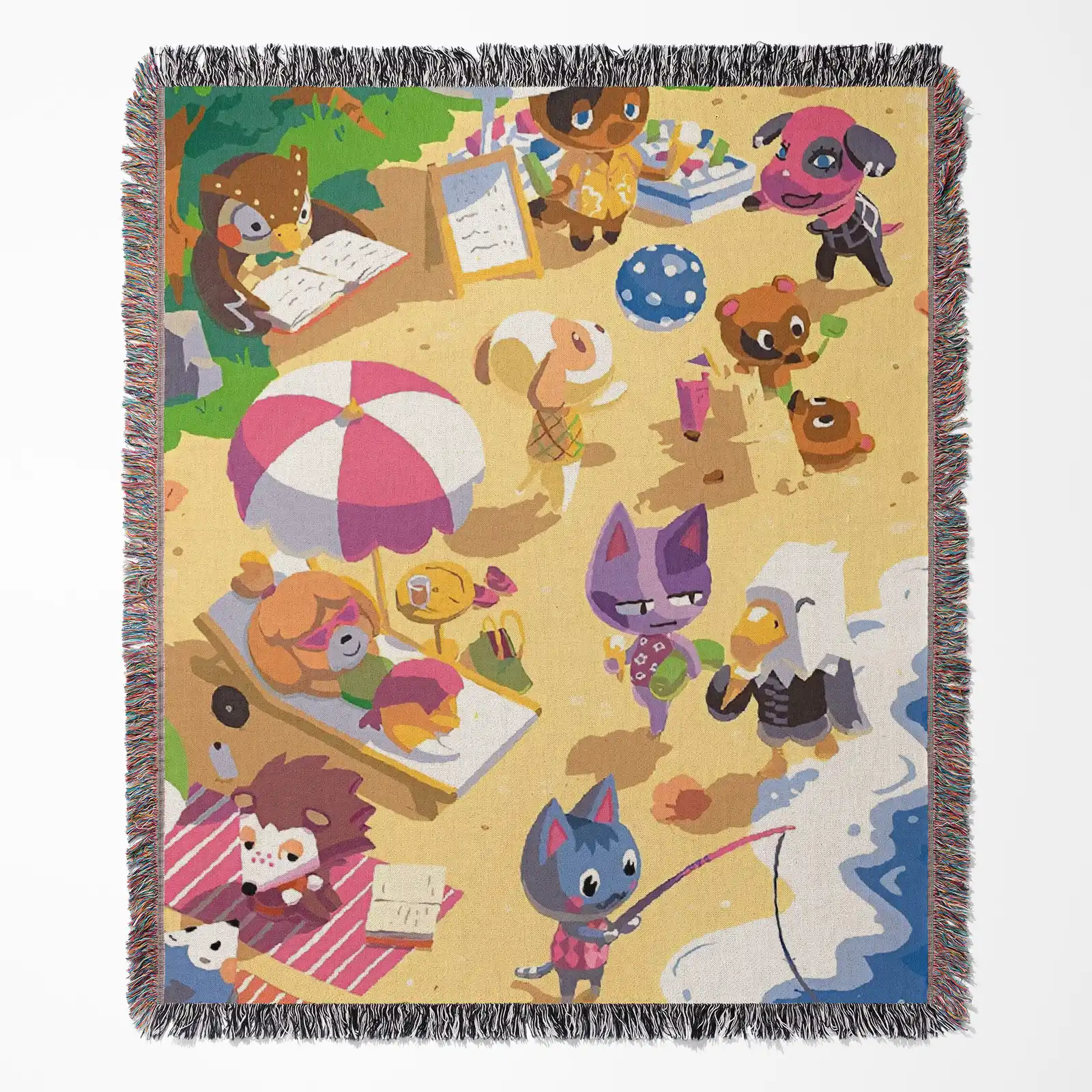 The Animal Crossing Woven Tapestry Throw Blanket is a cute wall art piece, perfect for cozy room and home decor, and makes a perfect gift.