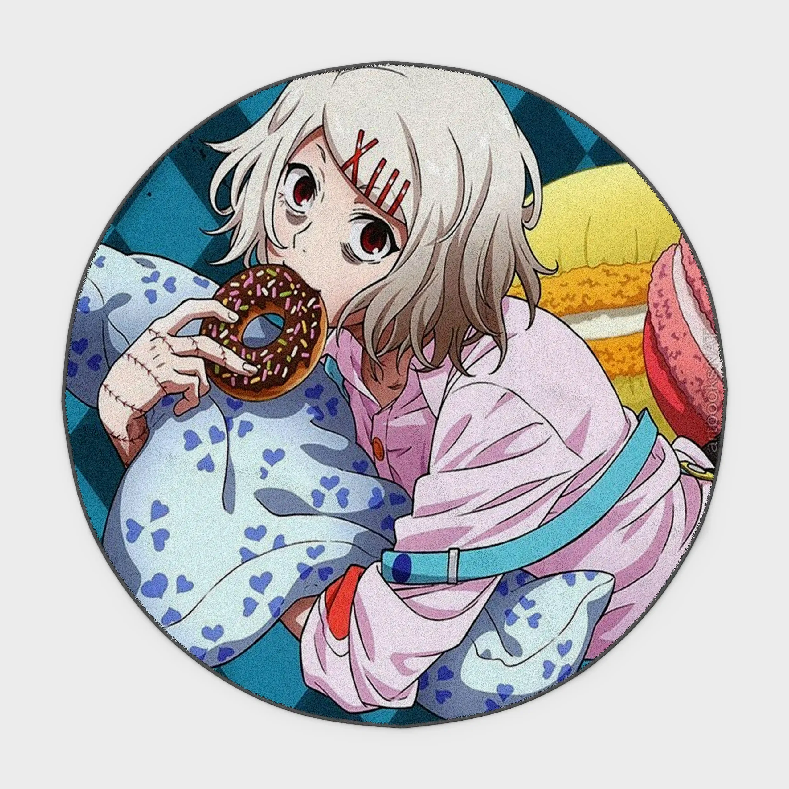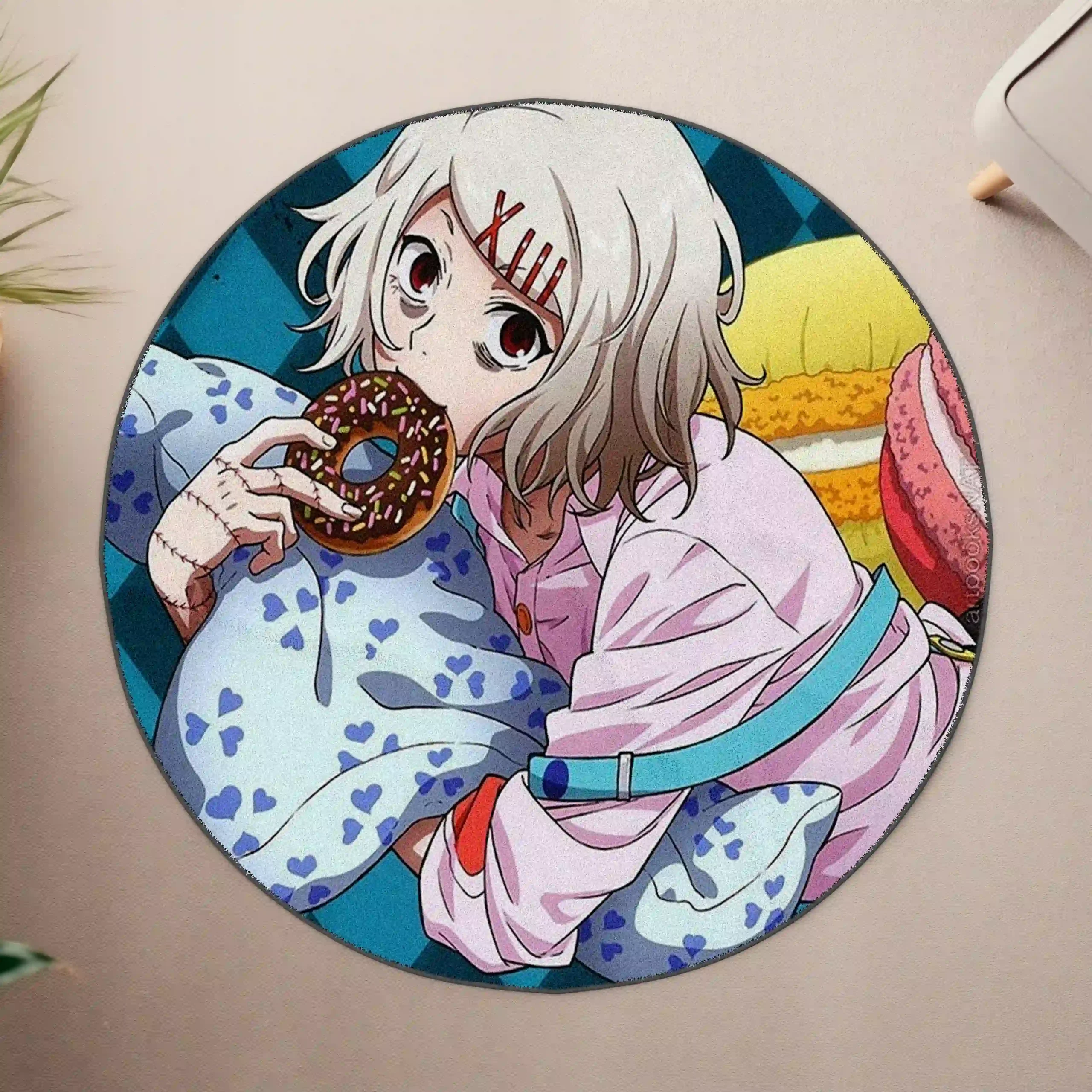 Bring the edgy and mysterious vibe of Juuzou Suzuya into your space with this Tokyo Ghoul Juuzou Suzuya Round Rug. Featuring high-resolution artwork that captures Juuzou’s distinctive style and haunting presence, this round rug is a must-have for Tokyo Ghoul fans, anime collectors, and anyone looking to add a bold statement piece to their bedroom, gaming room, or dorm decor. Crafted with plush Raschel velvet, it offers a soft, cozy feel underfoot while protecting your floors. Its circular shape complements various room styles, from modern minimalism to vibrant otaku setups.