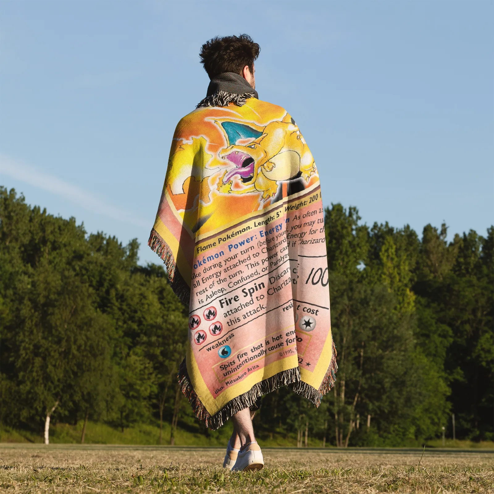Charizard Card Woven Tapestry Throw Blanket – Fiery Wall Art, Room & Home Decor, Collector Gift