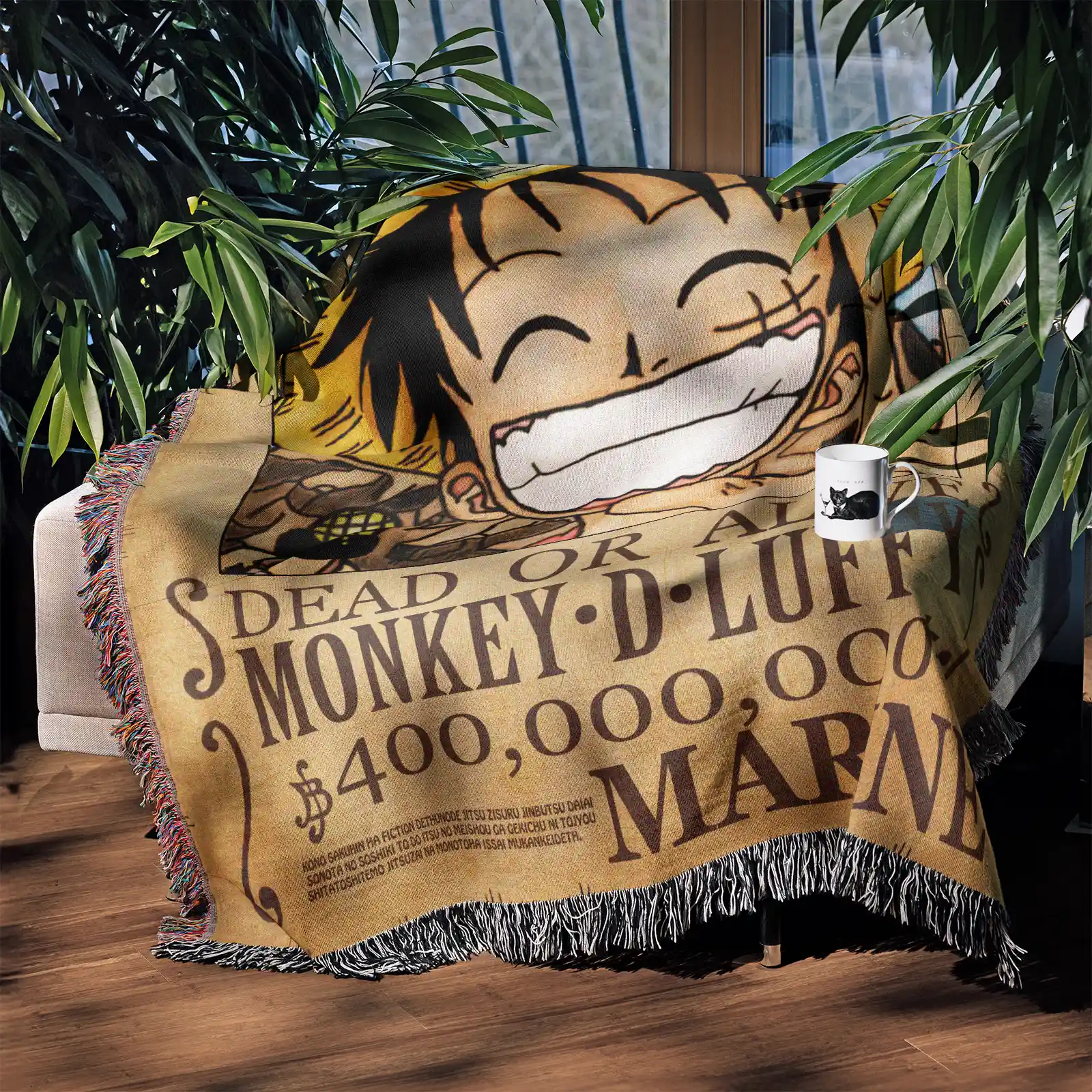 • Unique Design: Features Luffy Wanted poster artwork in detailed woven style for standout decor.