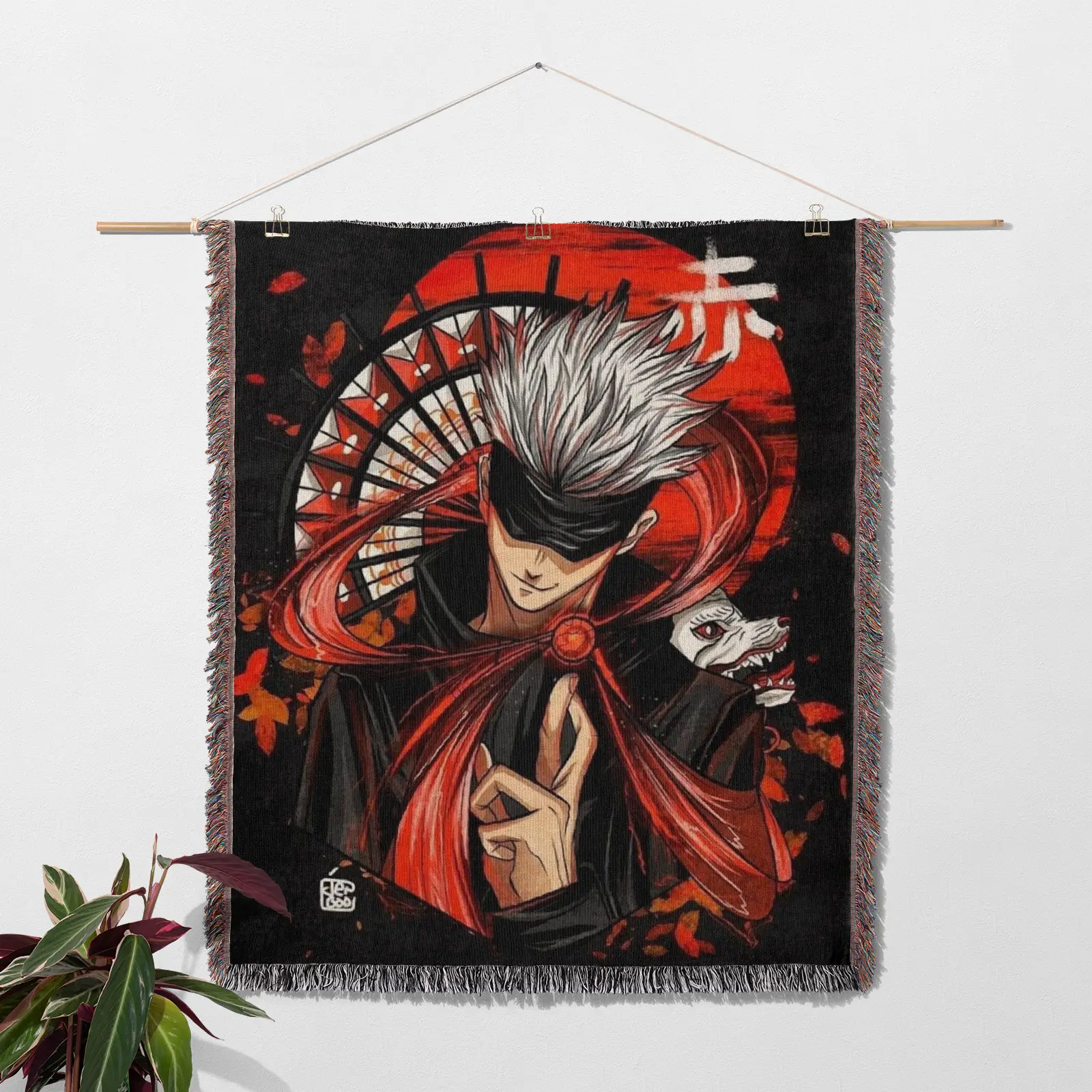 JJK Satoru Gojo Woven Tapestry Throw Blanket – Unique Wall Hanging, Room & Home Decor, Collectible Gift