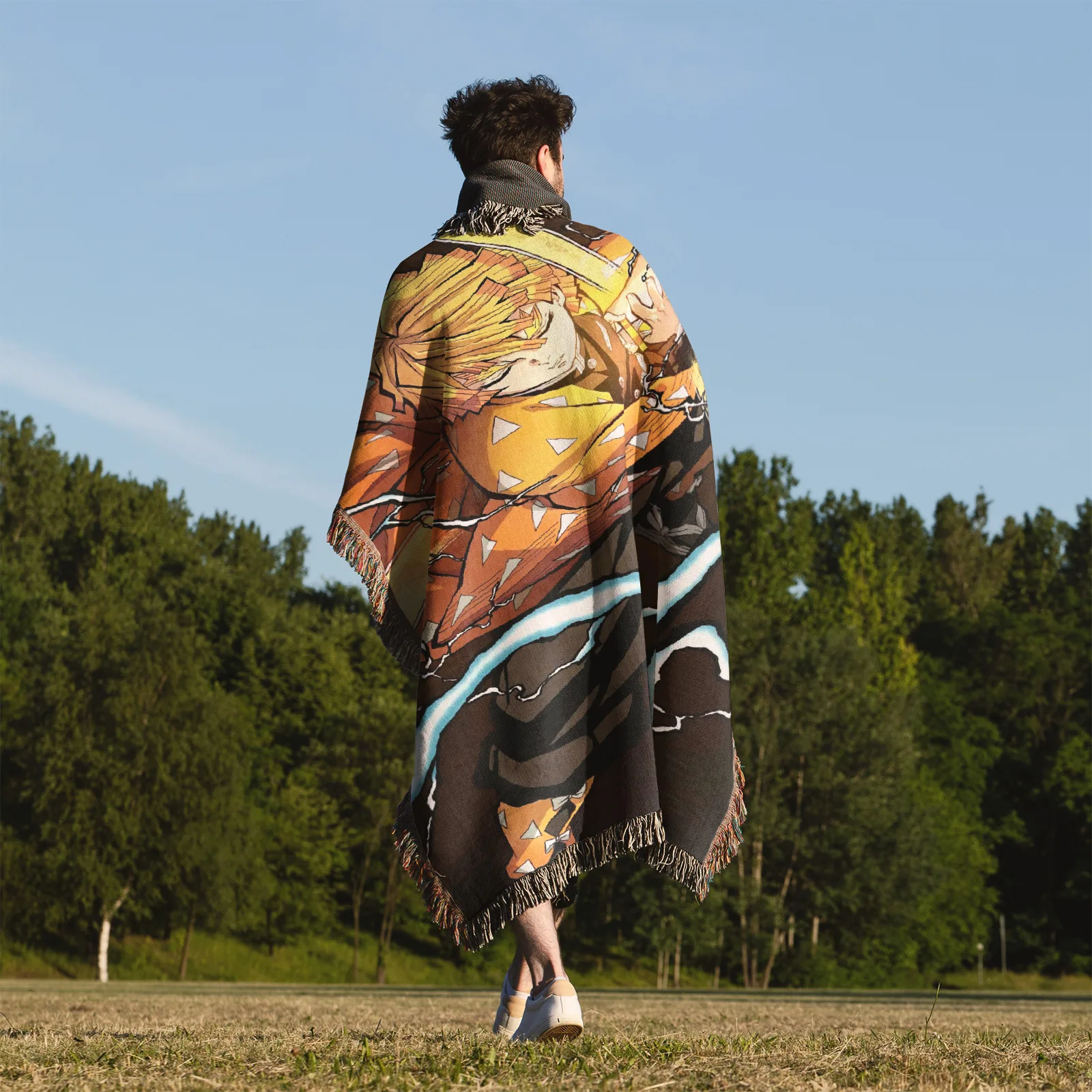 Demon Zenitsu Woven Tapestry Throw Blanket – Bright Wall Art, Room & Home Decor, Vibrant Home Accent