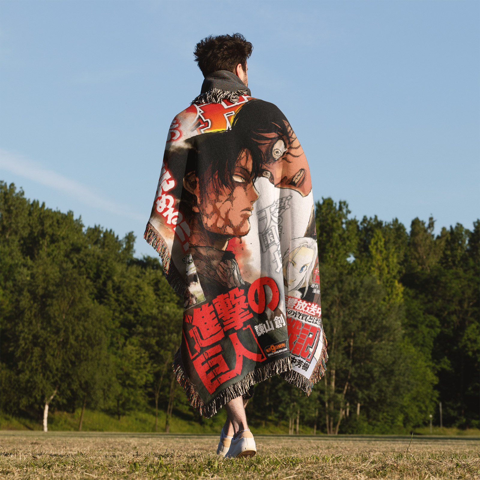 AOT Eren Yeager Woven Tapestry Throw Blanket – Epic Wall Rug, Home & Room Decor, Ideal Gift for Fans