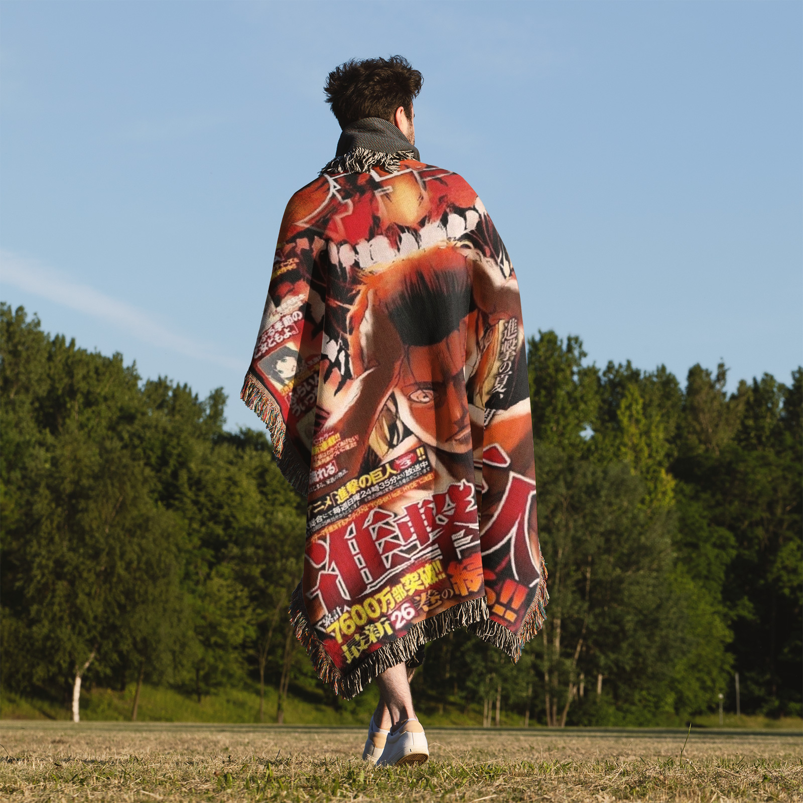 AOT Manga Cover Woven Tapestry Throw Blanket – Unique Wall Rug, Room & Home Decor, Must-Have Merch & Gift