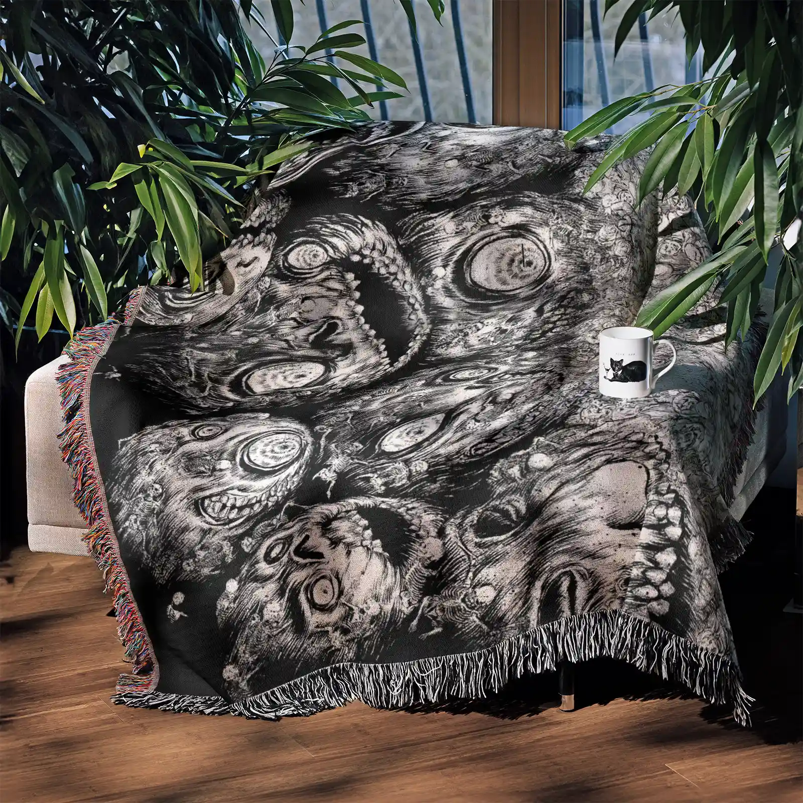 Skull Knight Woven Tapestry Throw Blanket – Dark Fantasy Wall Art, Room & Home Decor, Unique Gift