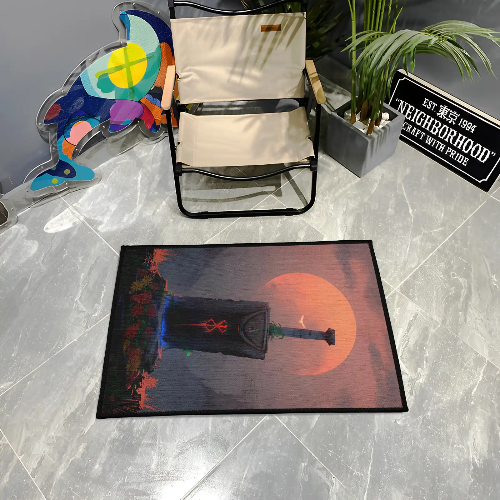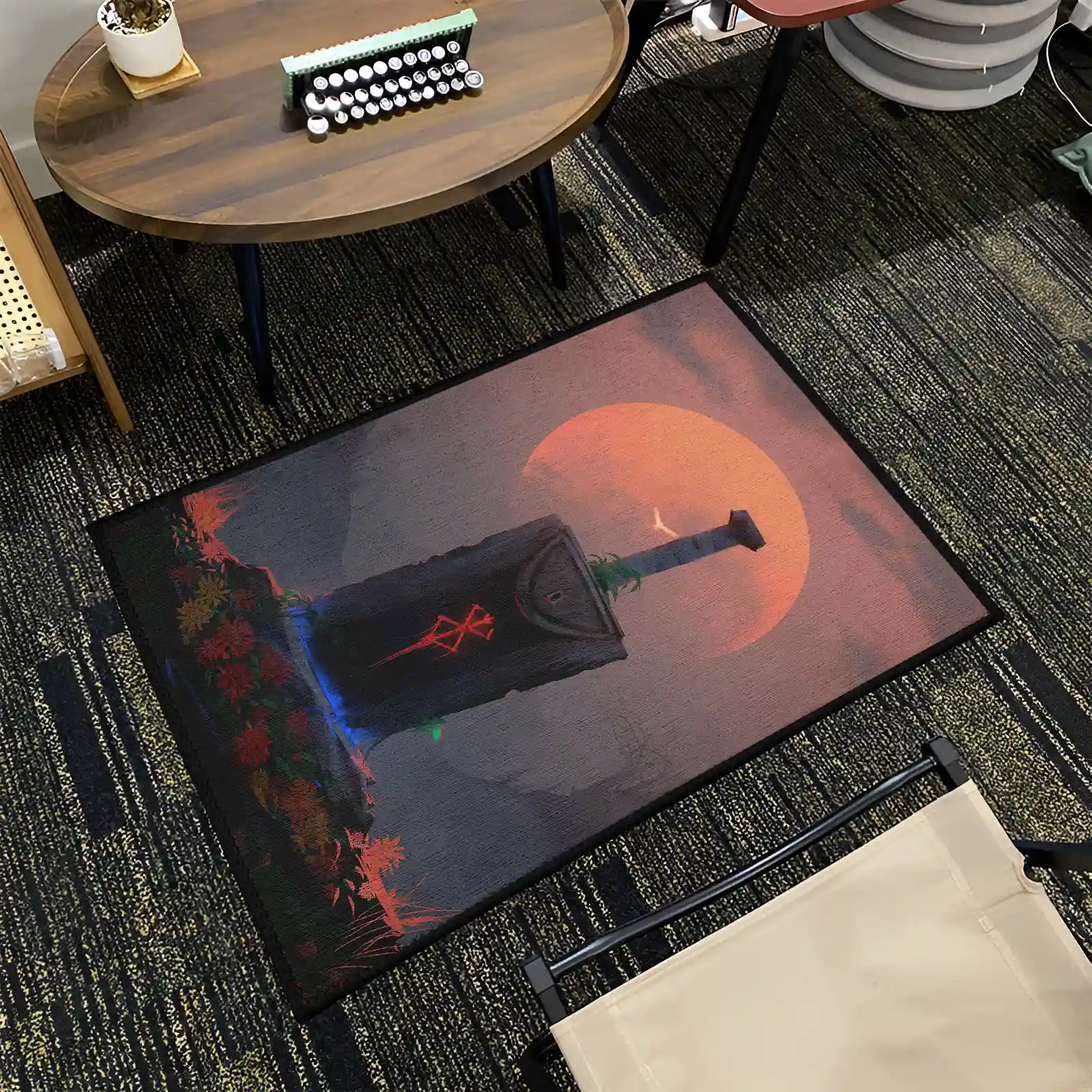 Honor the legacy of Guts and the fallen warriors of Berserk with this Berserk Sword Tomb Rug. Featuring a powerful scene of swords standing in a solemn field, this rug captures the emotional depth and dark fantasy tone of the series. It’s the perfect gift for anime fans, teen boys, and gamers looking to decorate their room with meaningful Berserk merch.