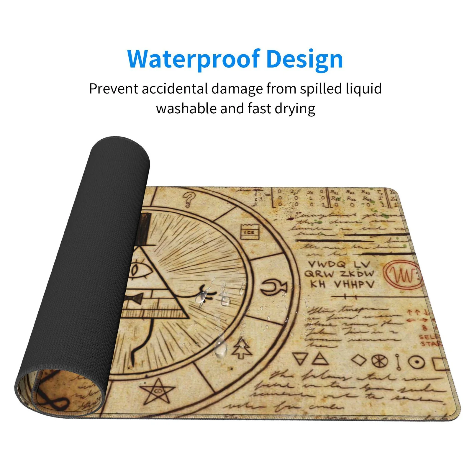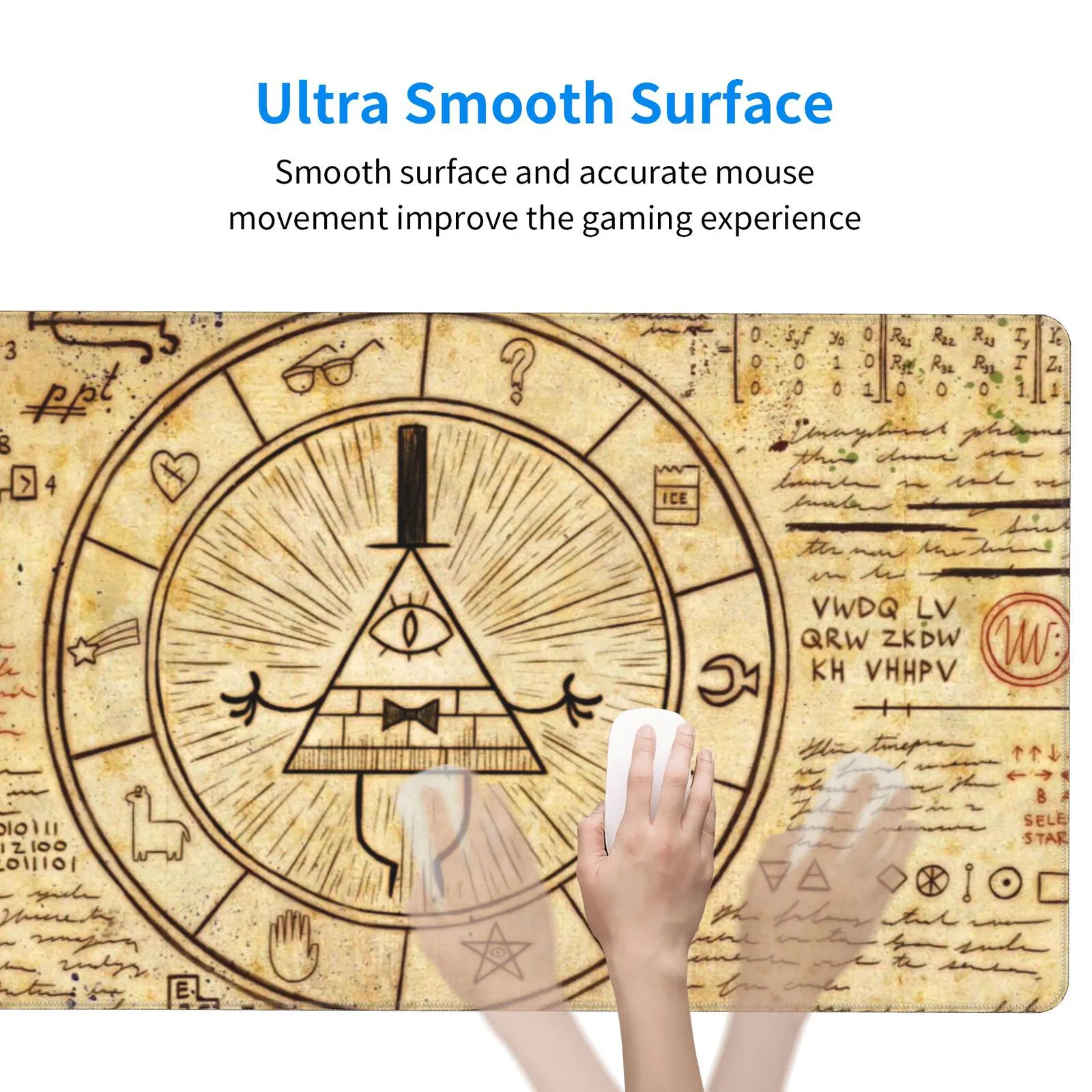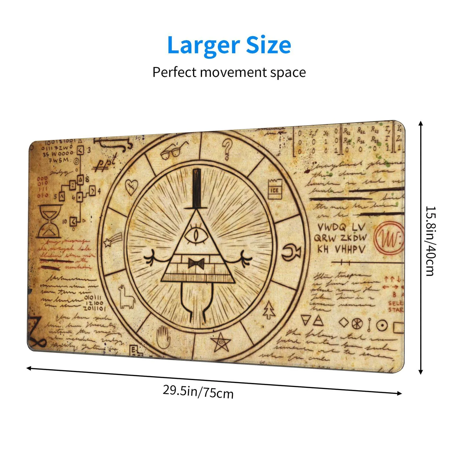 Unlock the mysteries with the Gravity Falls – Bill Cipher’s Symbols Mouse Pad & Desk Mat. Featuring the eerie symbols of Bill Cipher, it’s the ultimate desk accessory for fans of the strange and supernatural.