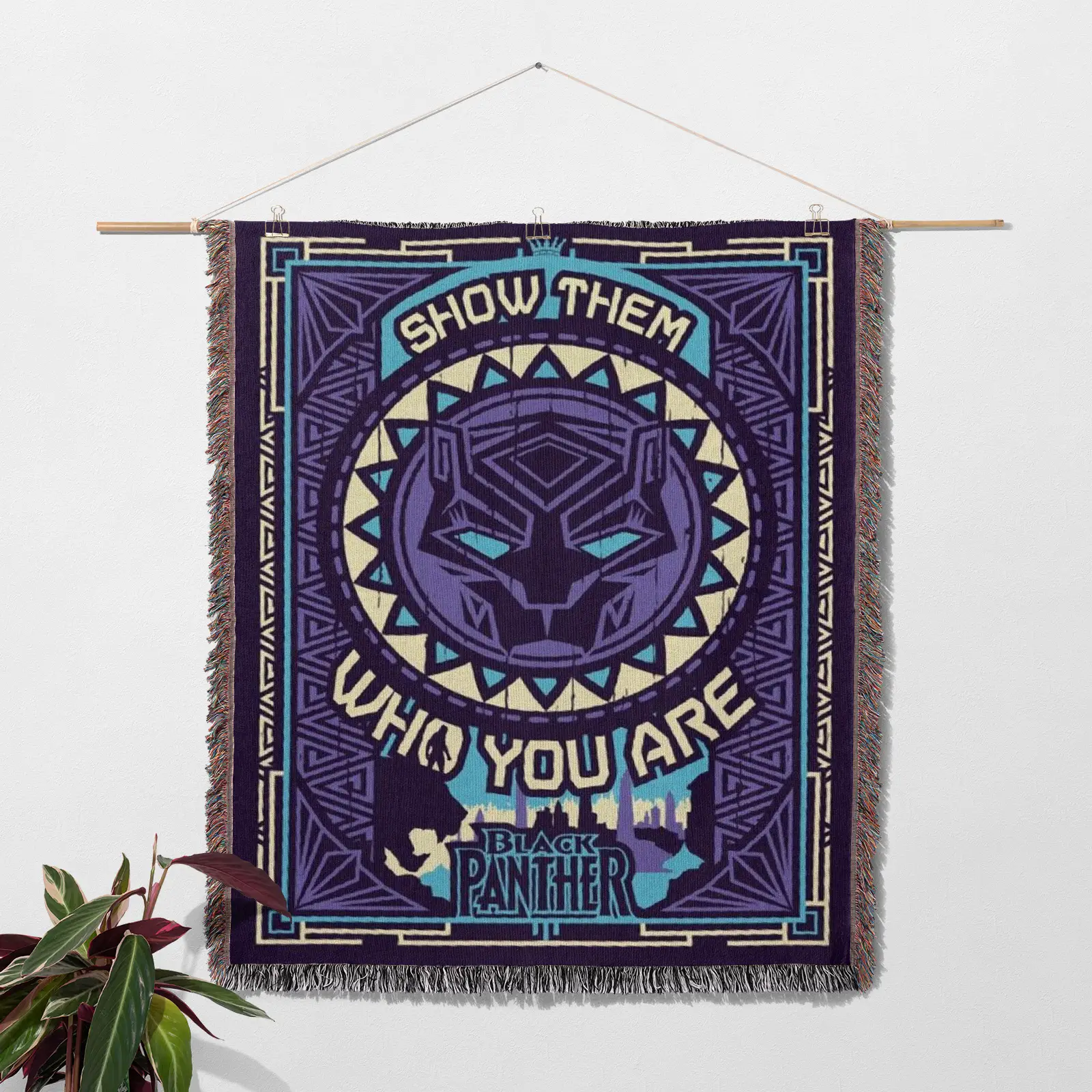 Add a fun and heroic touch with this Black Panther Woven Tapestry Throw Blanket – Fun Wall Art, Cozy Room Decor, Collectible Accent. Made with 100% cotton yarn and detailed woven patterns, perfect as wall tapestry, throw blanket, or decorative accent.