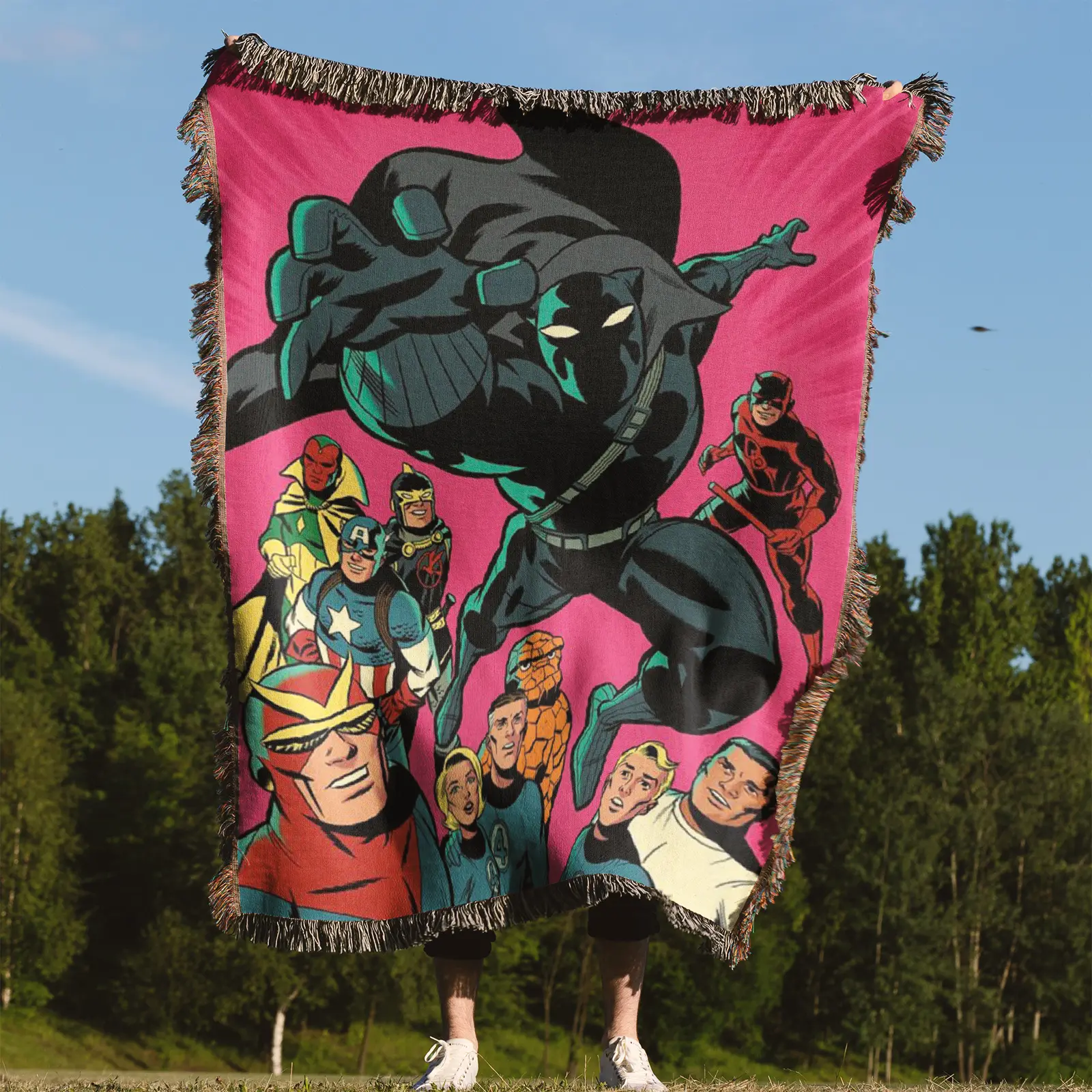 Panther Comic Cover Woven Tapestry Throw Blanket – Colorful Wall Art, Cool Room Decor, Collectible Merch
