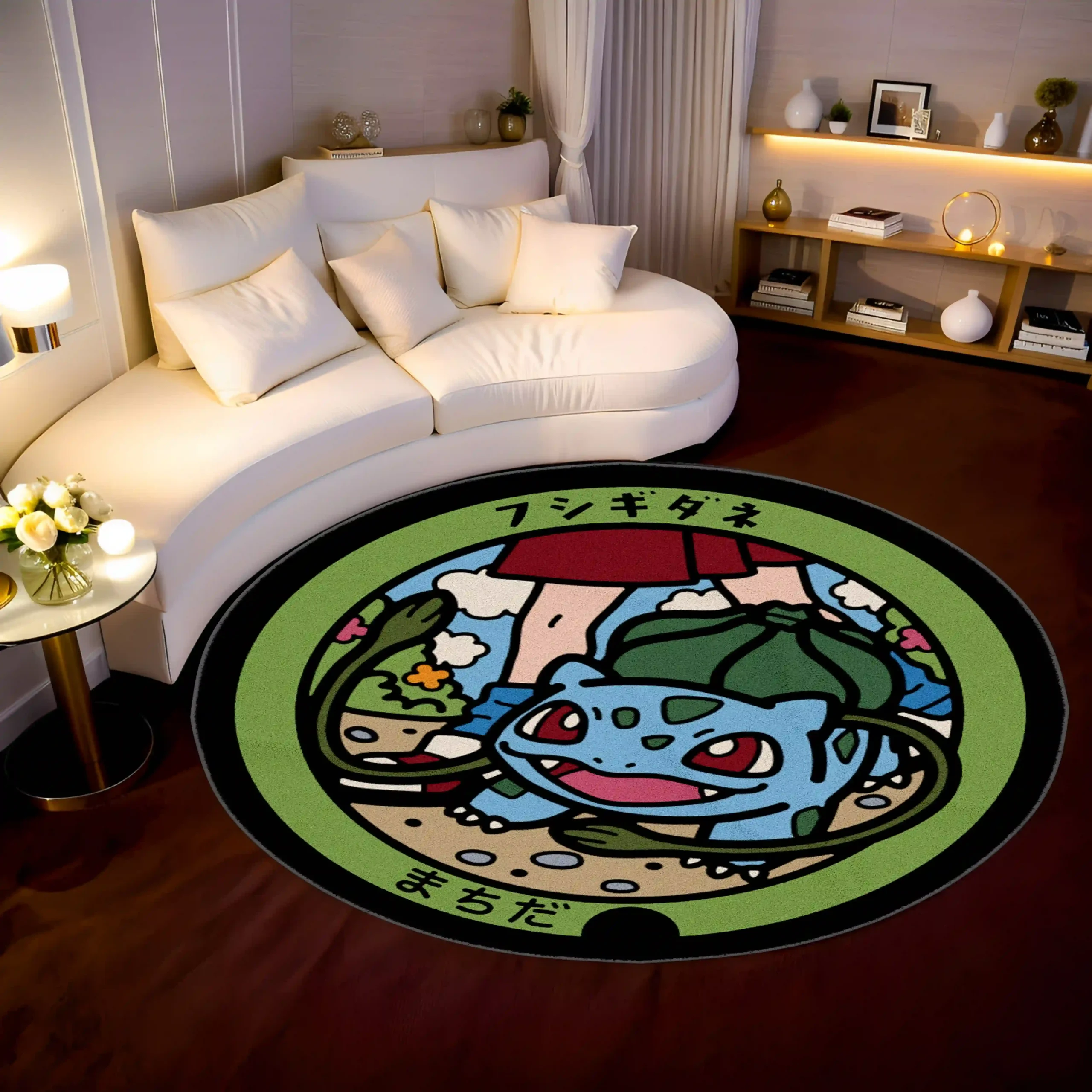 Bulbasaur Manhole Cover Round Rug – Cute Floor Mat for Kids Room or Cozy Setup