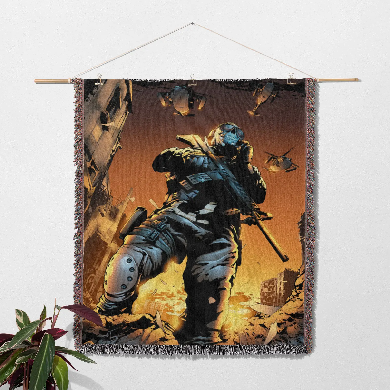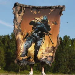 The Call of Duty Woven Tapestry Throw Blanket features a stylish wall rug, perfect for room decor and as a gift idea for gamers.