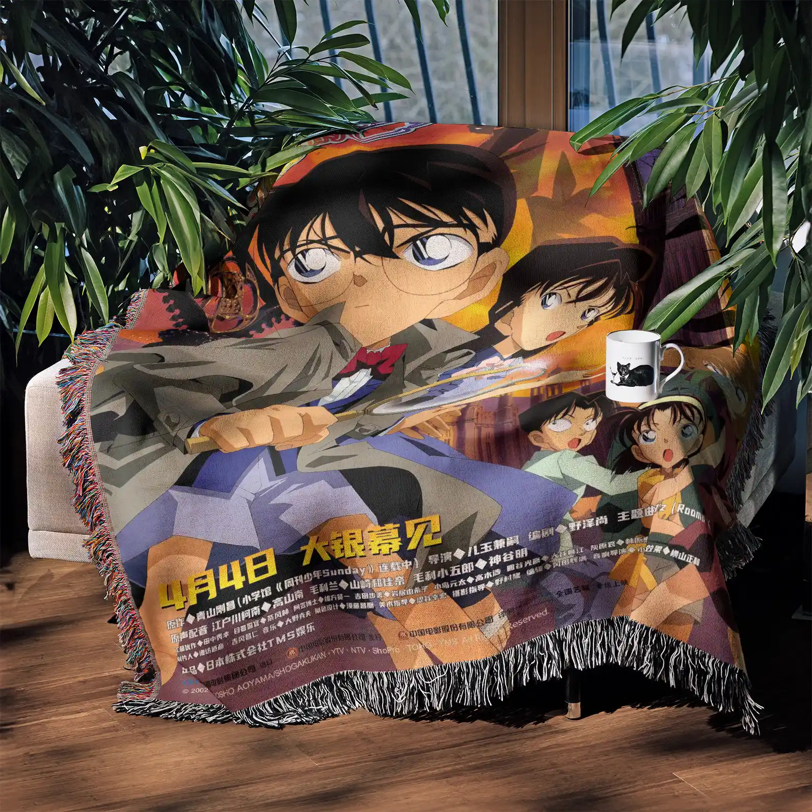 Case Closed Anime Woven Tapestry Throw Blanket – Retro Wall Art, Cozy Room Decor, Collectible Accent