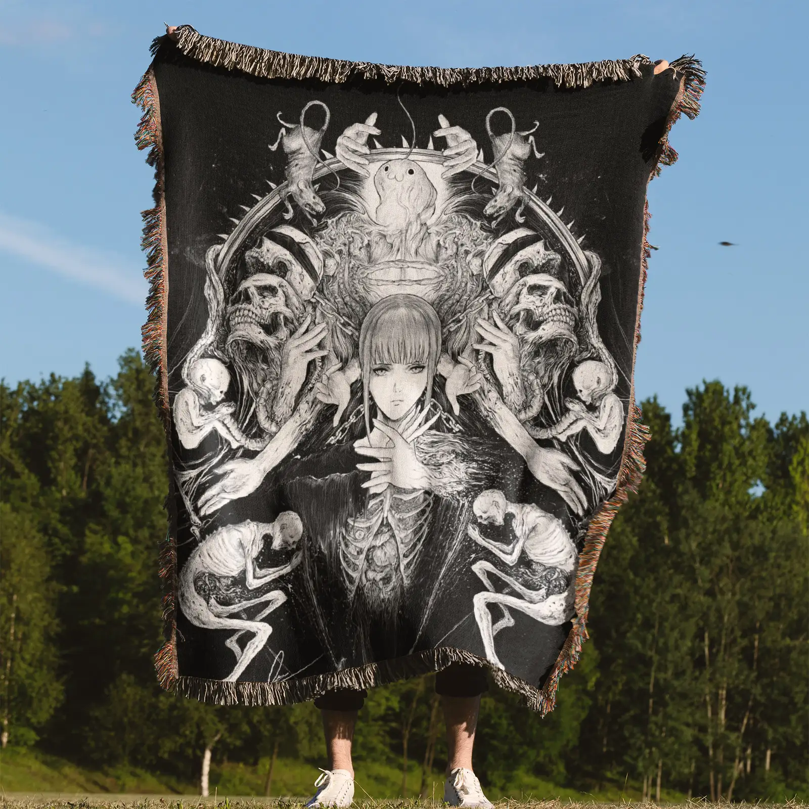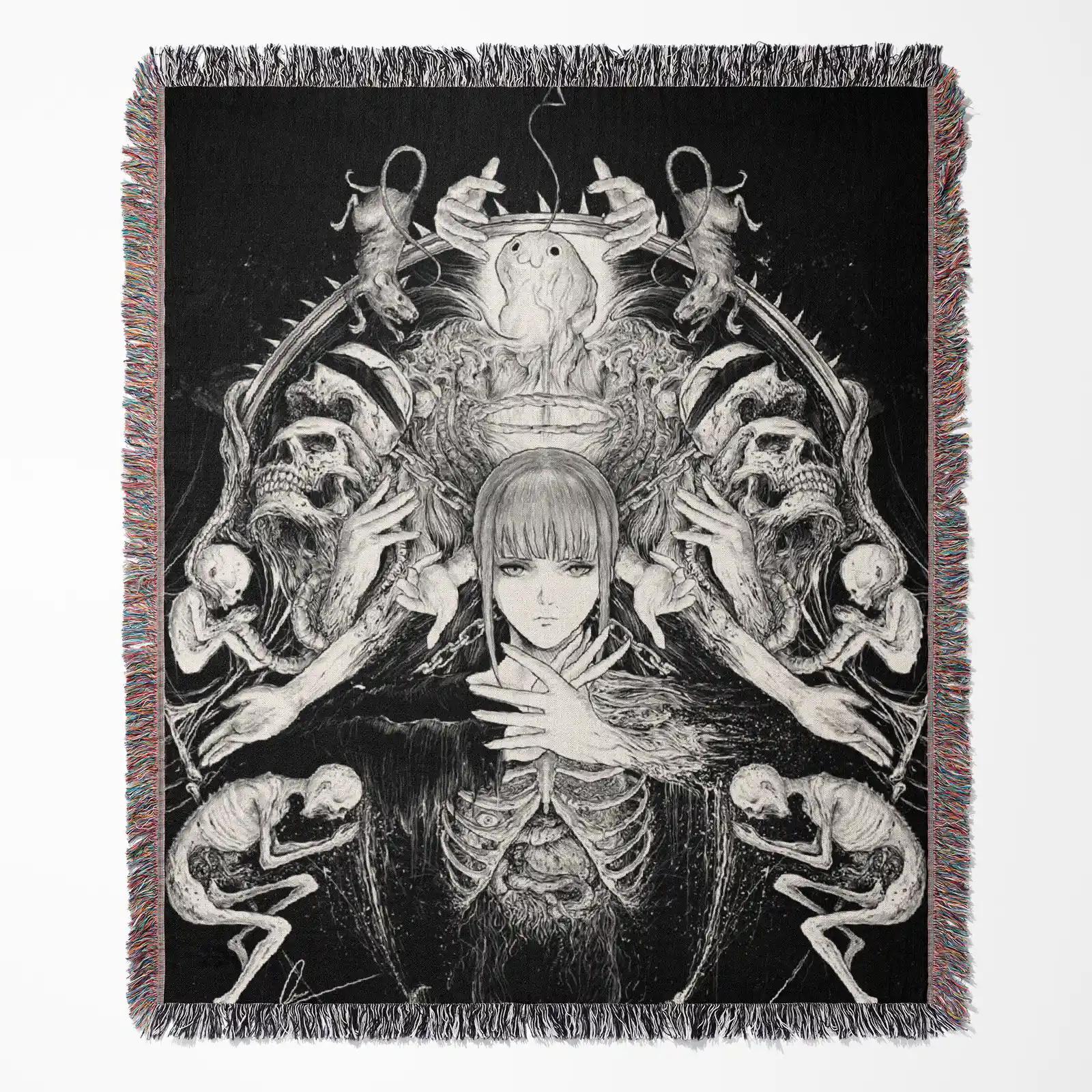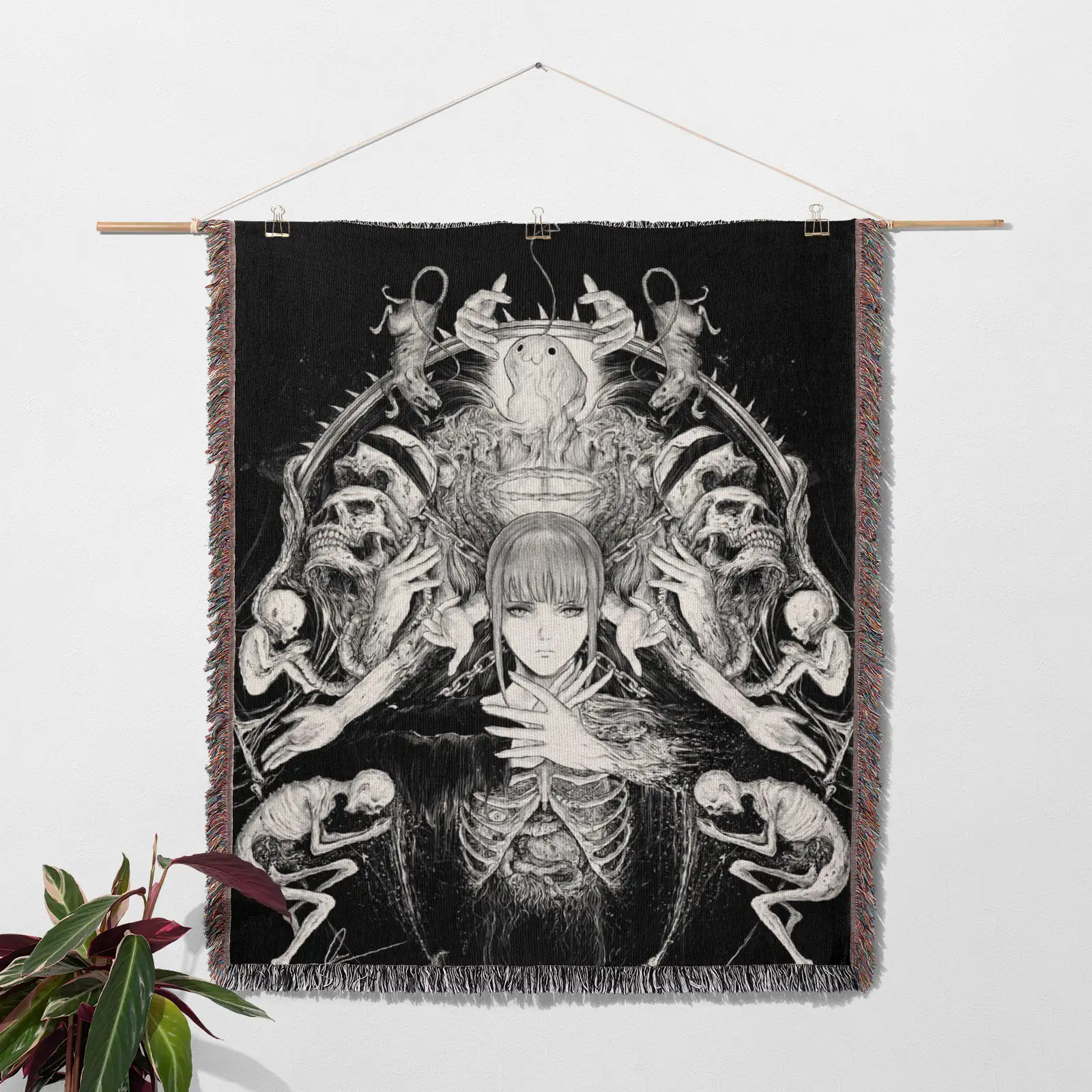 CSM Aki Hayakawa Woven Tapestry Throw Blanket – Dark Wall Art, Room & Home Decor, Collectible Gift