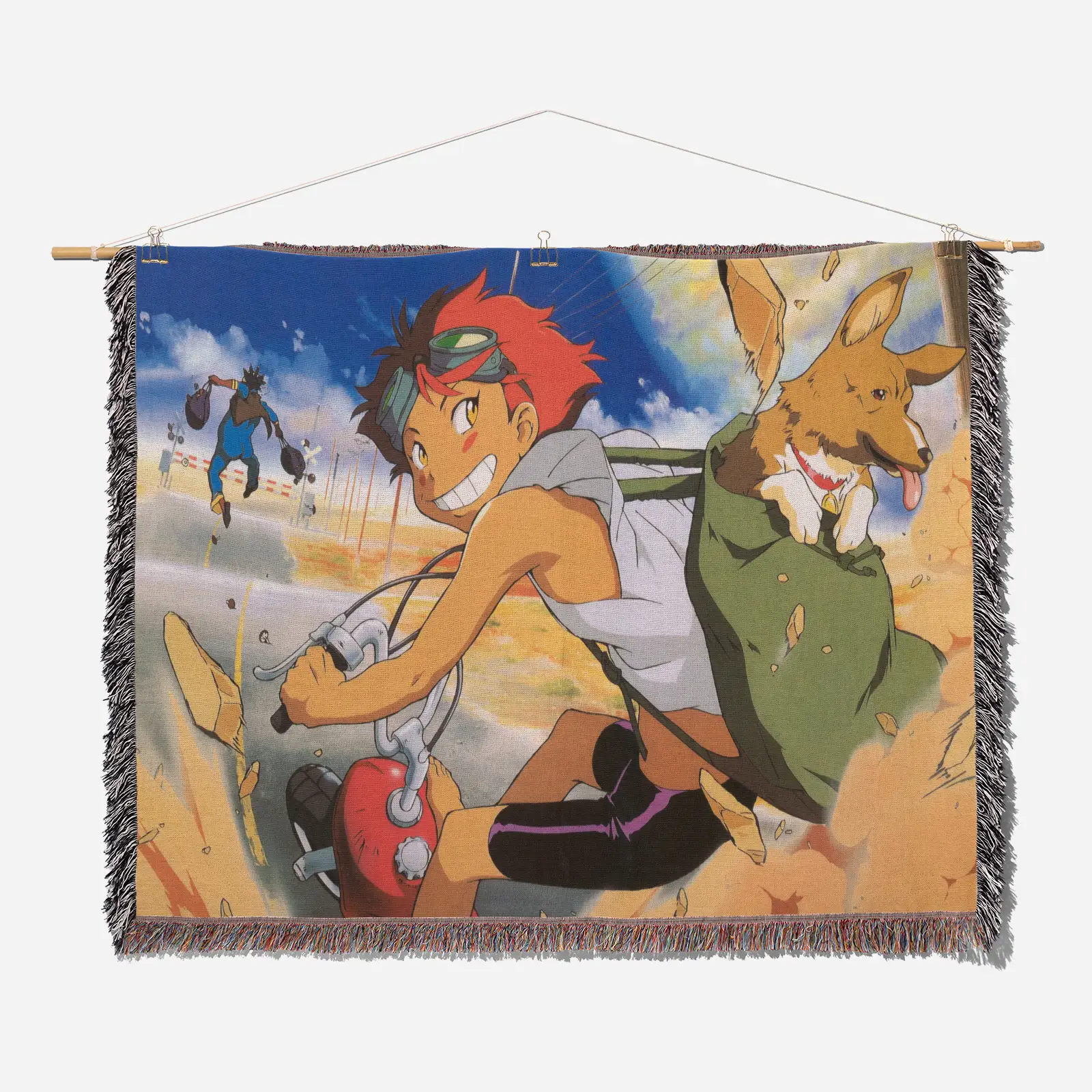 Step into the retro space-western world with the Cowboy Bebop Woven Tapestry Throw Blanket. Perfect as wall art, cozy throw, or room decor, this tapestry adds iconic Bebop style to any space.