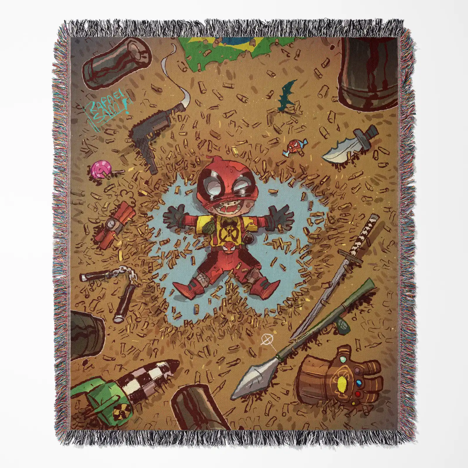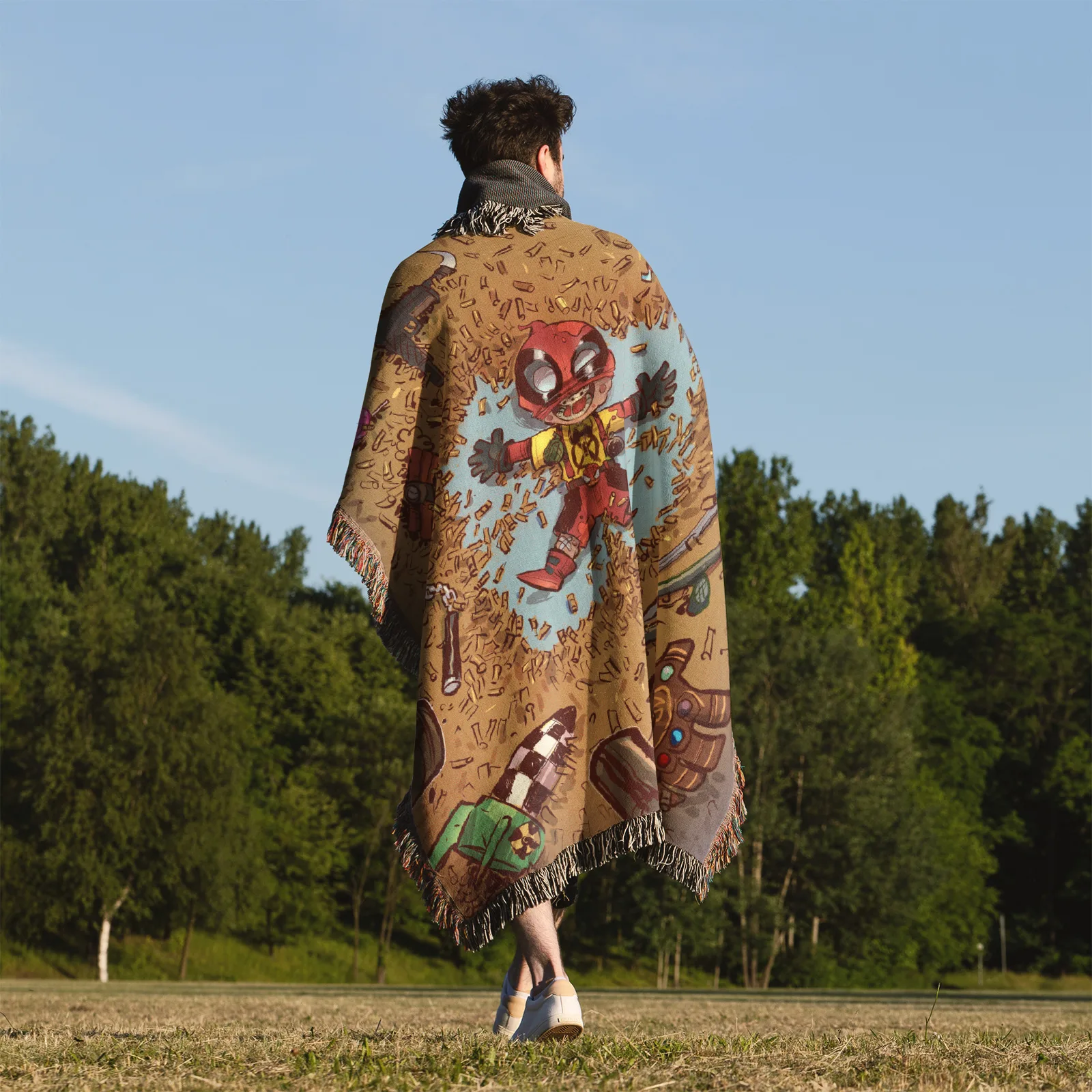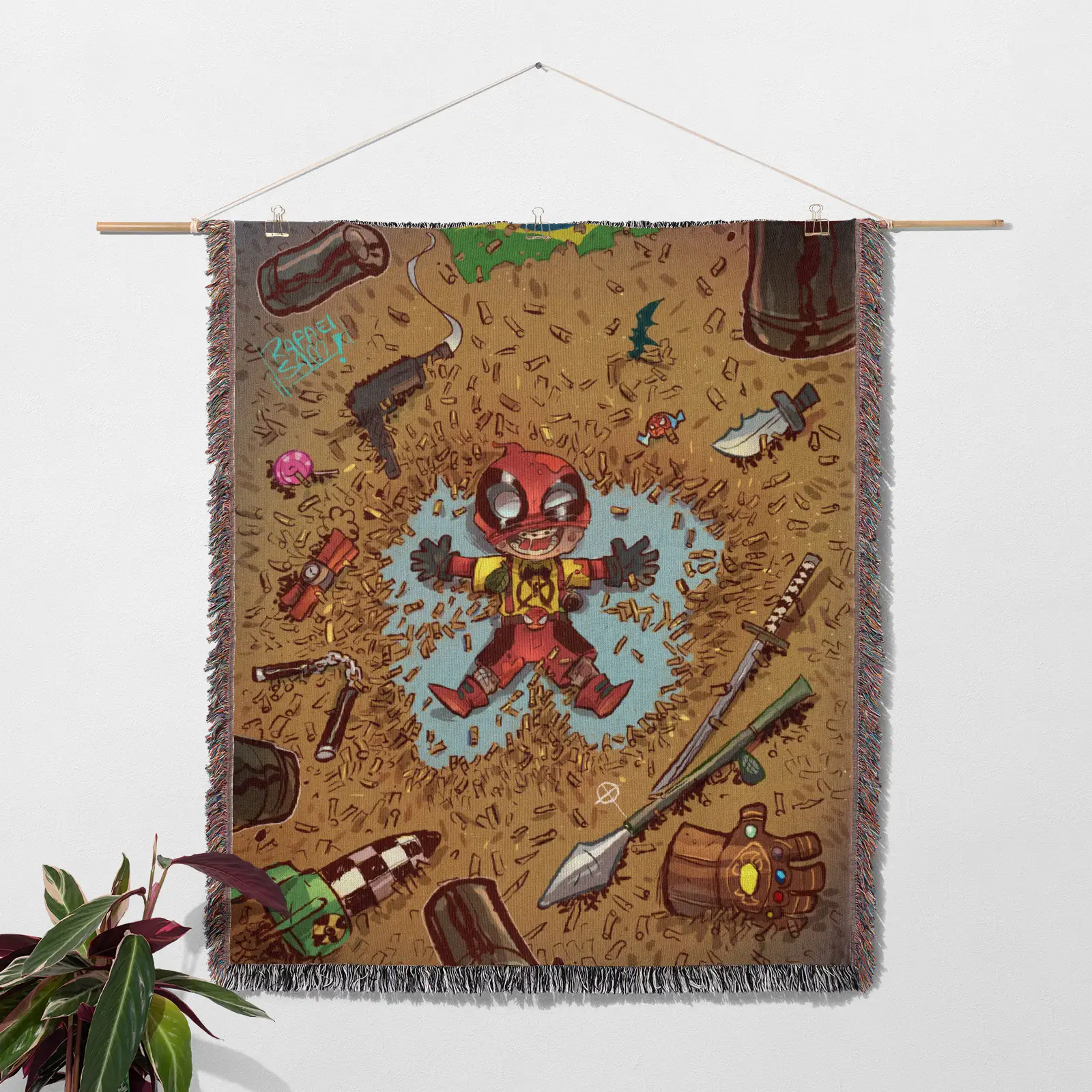 Add fun and bold style with this Deadpool Woven Tapestry Throw Blanket – Fun Wall Art, Cool Room Decor, Collectible Accent. Made with 100% cotton yarn and rich woven patterns, perfect as wall tapestry, throw blanket, or decorative accent.