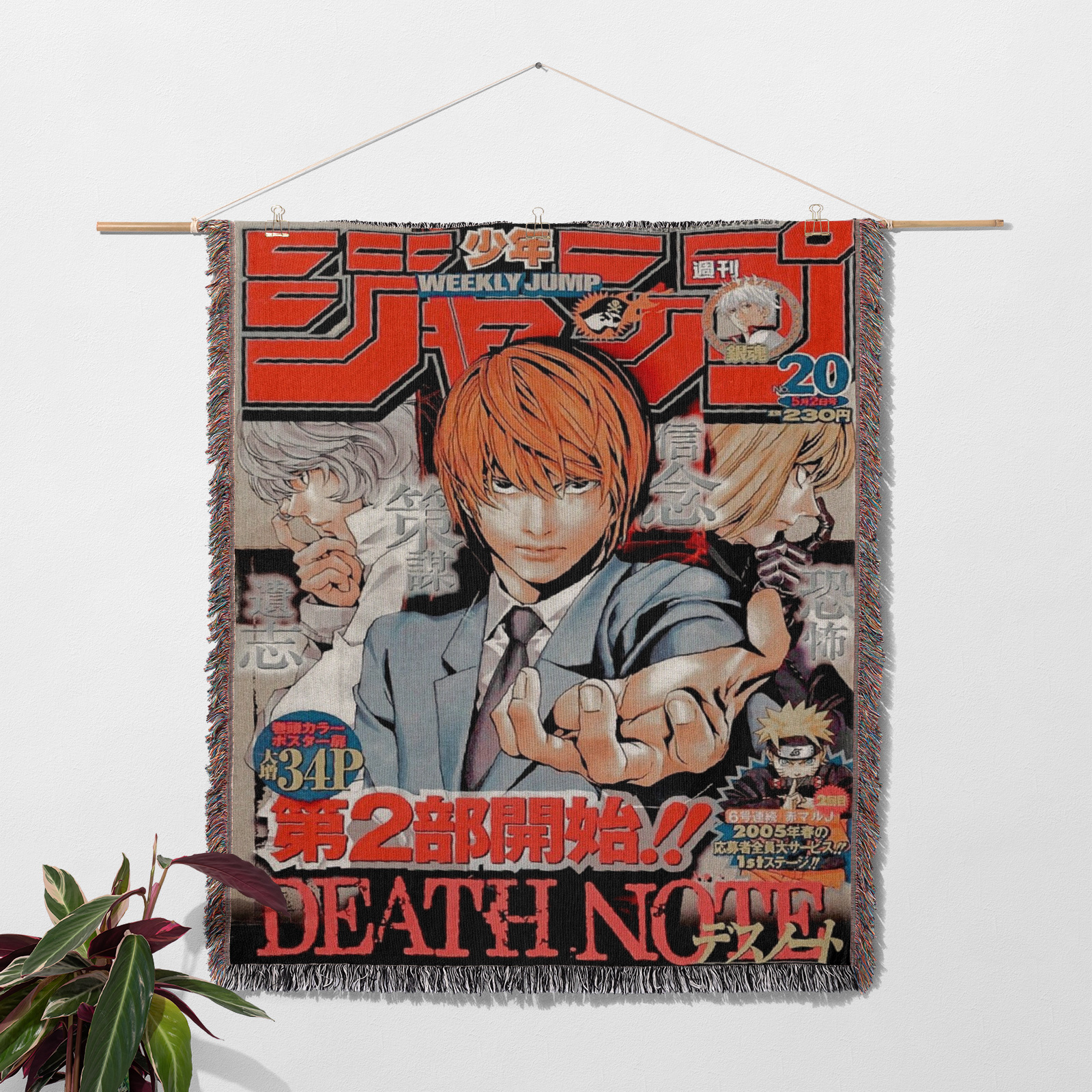 The Death Note Woven Tapestry Throw Blanket offers stylish woven wall art, ideal for room & home decor, and makes a perfect gift for fans of the series.