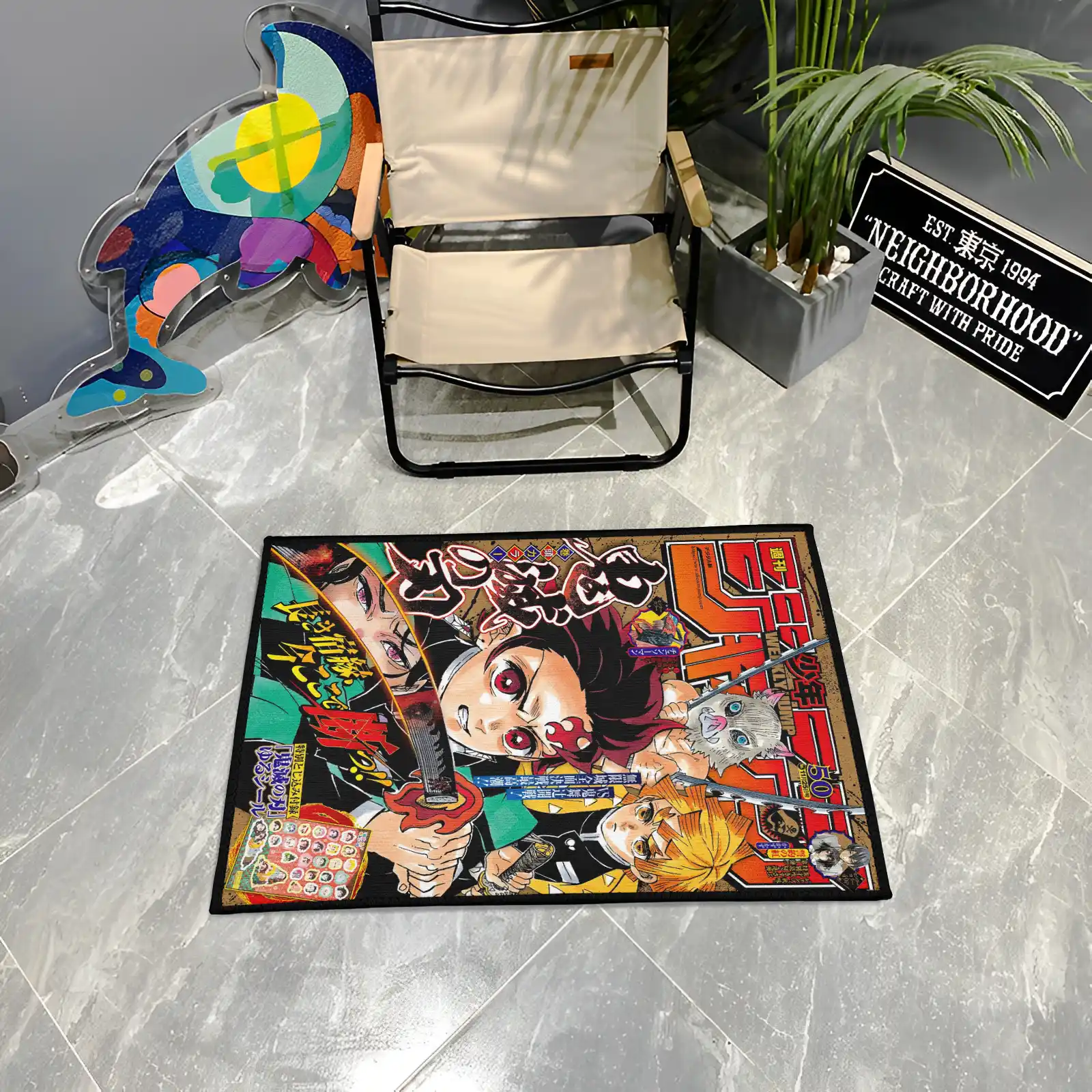 Demon Slayer Jump Cover Rug – Unique Floor Mat for Boys Room or Gift