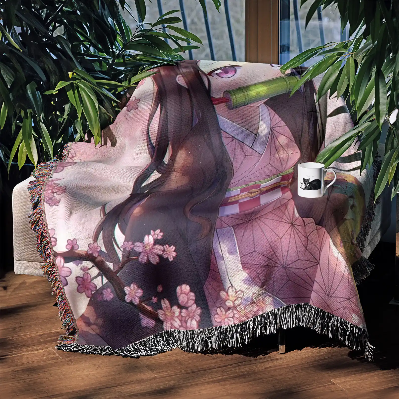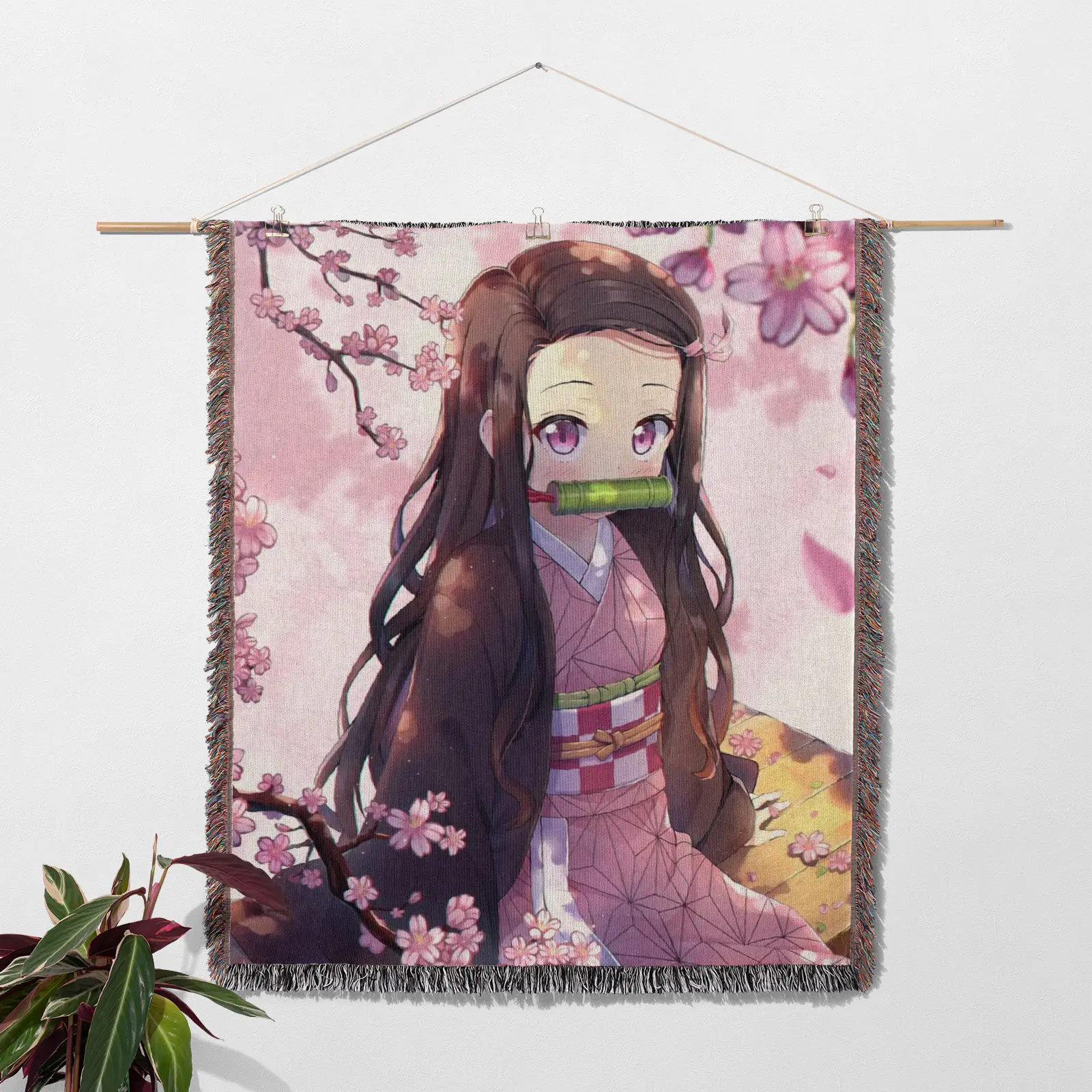 Demon Nezuko Woven Tapestry Throw Blanket – Cute Wall Art, Fierce Room & Home Decor, Ideal Gift
