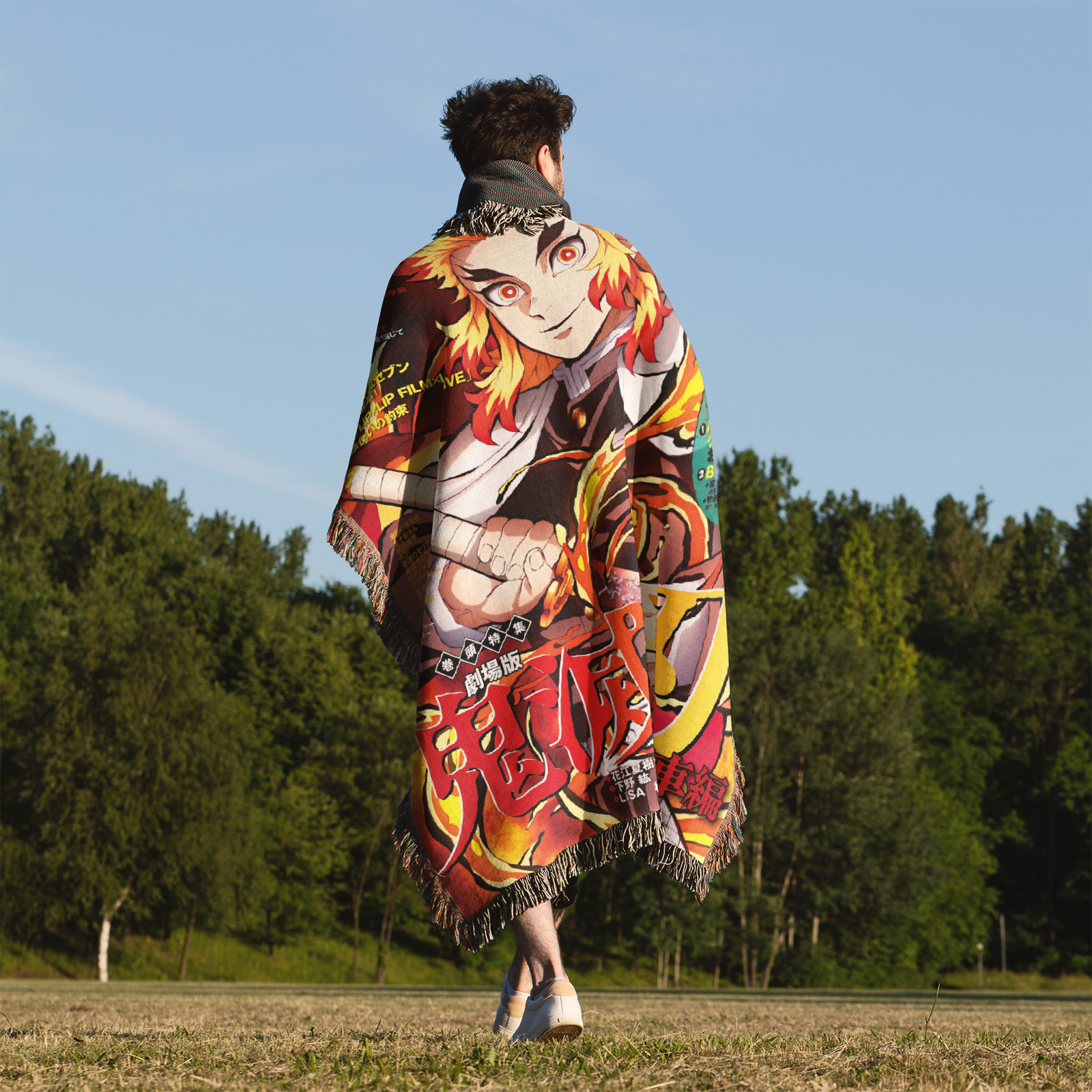 Demon Rengoku Kyoujurou Anime Woven Tapestry Throw Blanket – Fiery Wall Art, Room & Home Decor, Perfect Gift