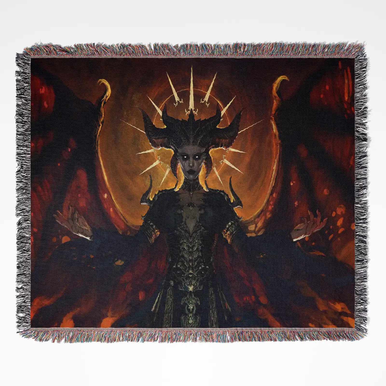 Diablo Woven Tapestry Throw Blanket – Dark Fantasy Wall Art, Iconic Room Decor, Perfect Gamer Gift
