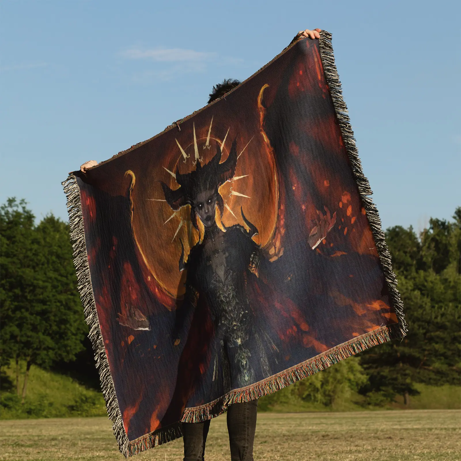 Diablo Woven Tapestry Throw Blanket – High-Quality Wall Art, Durable Picnic Mat, Great Room Accent
