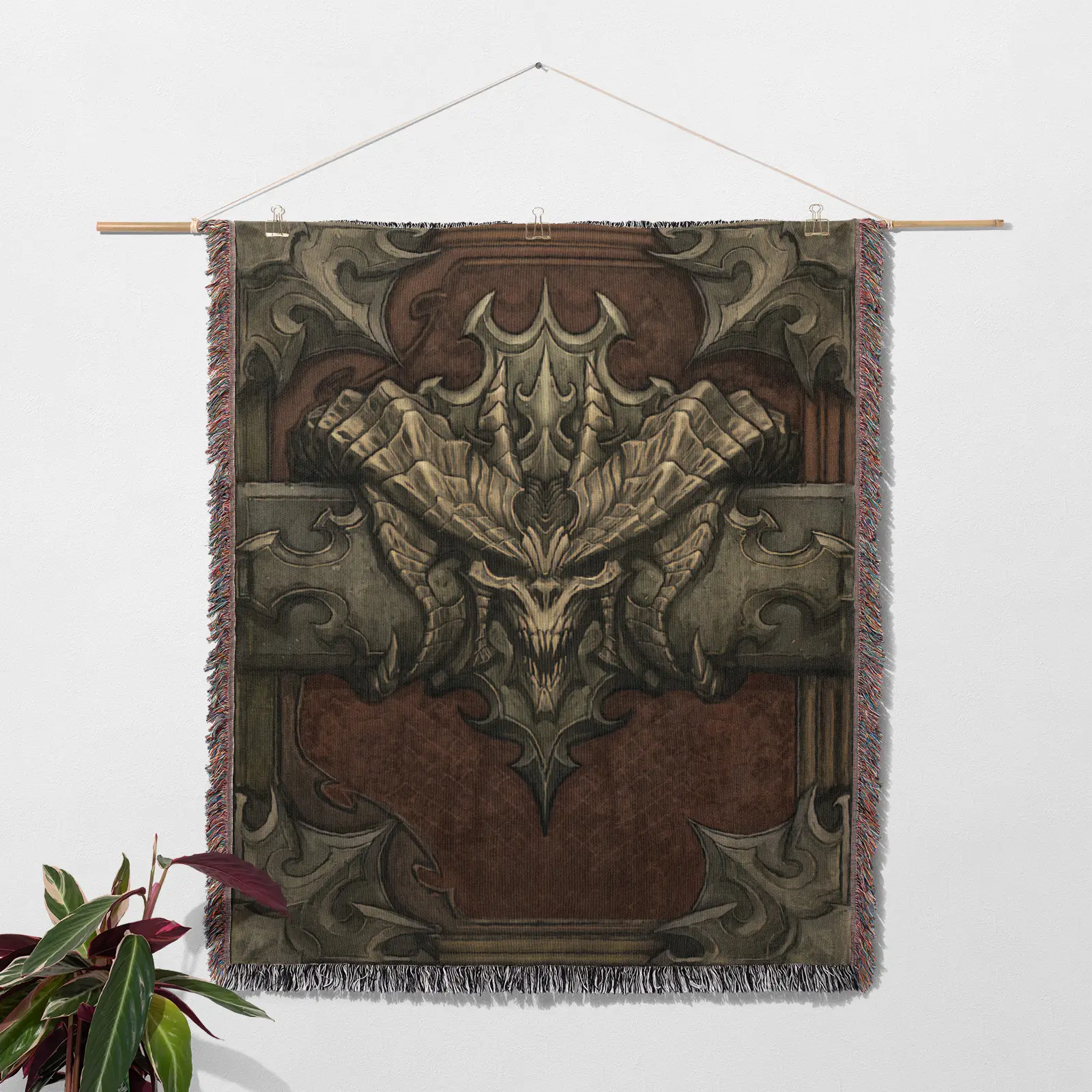 Bring dark fantasy style into any room with this Diablo Woven Tapestry Throw Blanket. Made with 100% cotton yarn, its dark wall art design is perfect for room decor, cozy home accents, or as a collectible gift for gamers and fantasy enthusiasts.