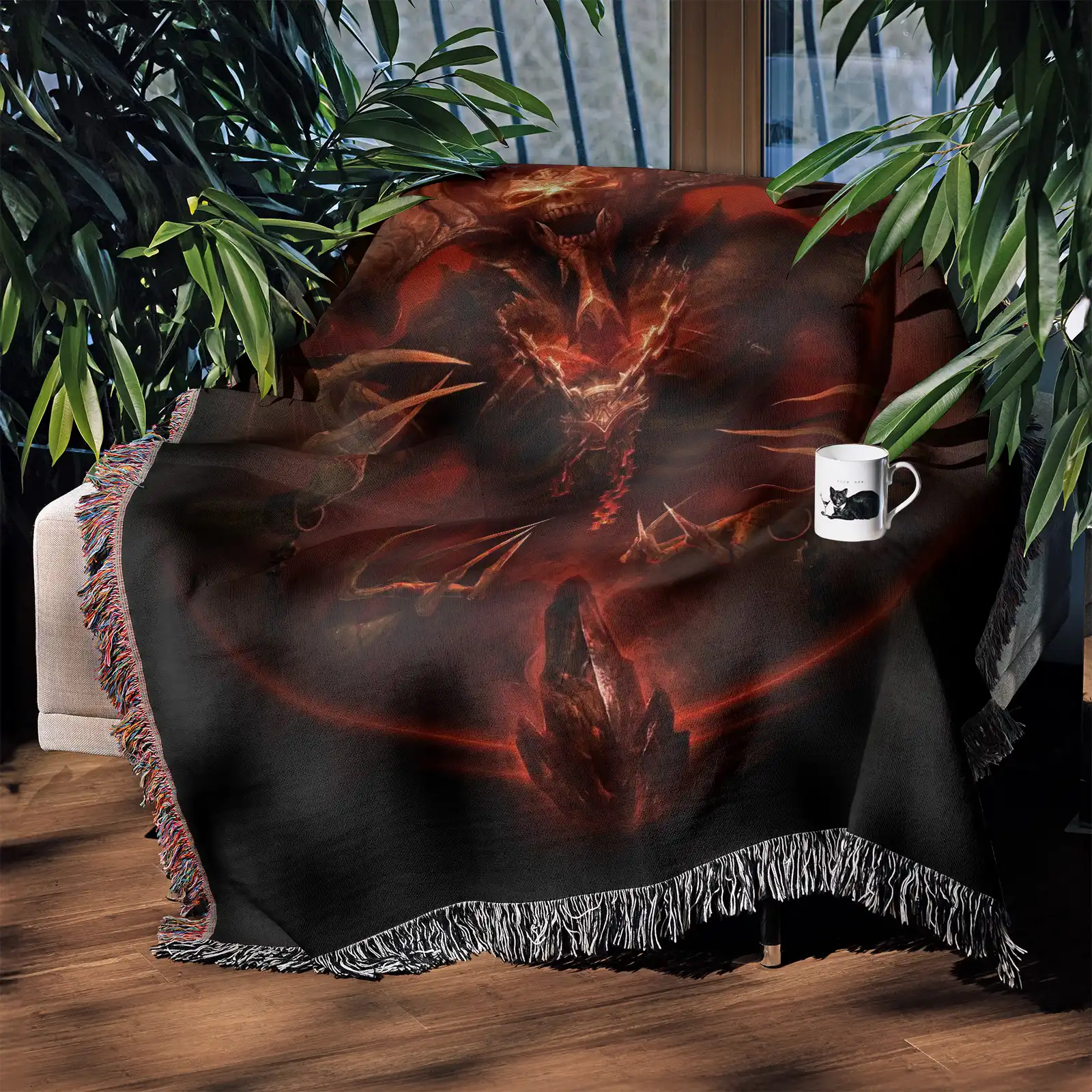 Diablo Woven Tapestry Throw Blanket – Stylish Wall Art, Versatile Picnic Mat, Perfect Gaming Room Accent
