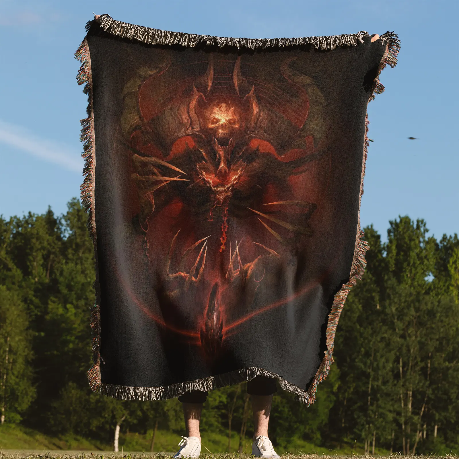 Diablo Woven Tapestry Throw Blanket – High-Quality Wall Art, Durable Picnic Mat, Great Room Accent