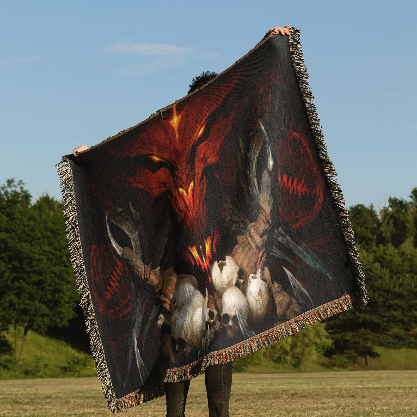 Diablo Woven Tapestry Throw Blanket – High-Quality Wall Art, Durable Picnic Mat, Great Room Accent
