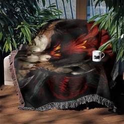 Diablo Woven Tapestry Throw Blanket – Vintage Wall Rug, Cozy Home Decor, Ideal Collectible for Fans