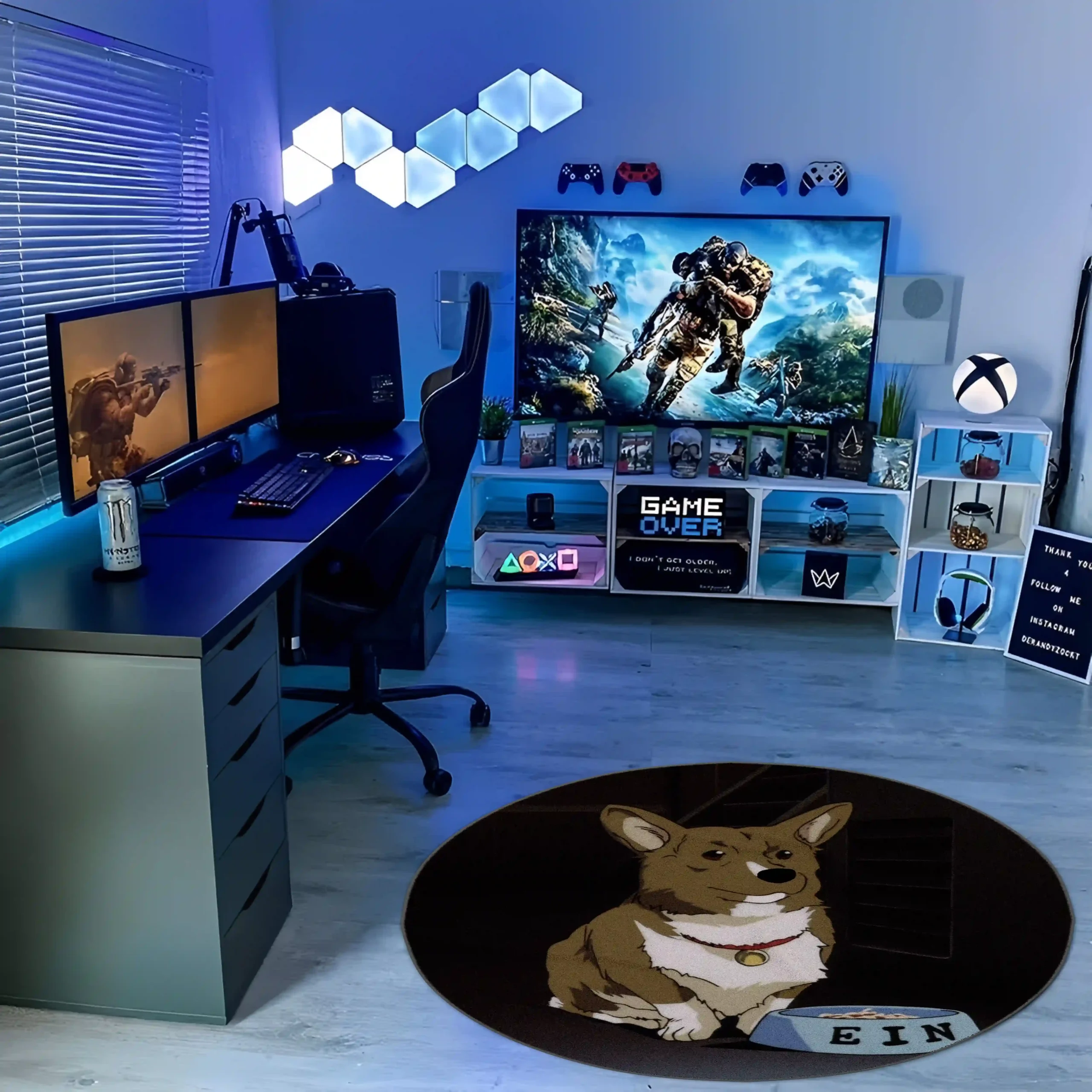 Add a fun sci-fi vibe to your bedroom or anime collection with the Ein Round Rug. Featuring the beloved Bebop data dog, this anime floor mat combines plush Raschel velvet softness with a secure non-slip backing for comfort and durability.