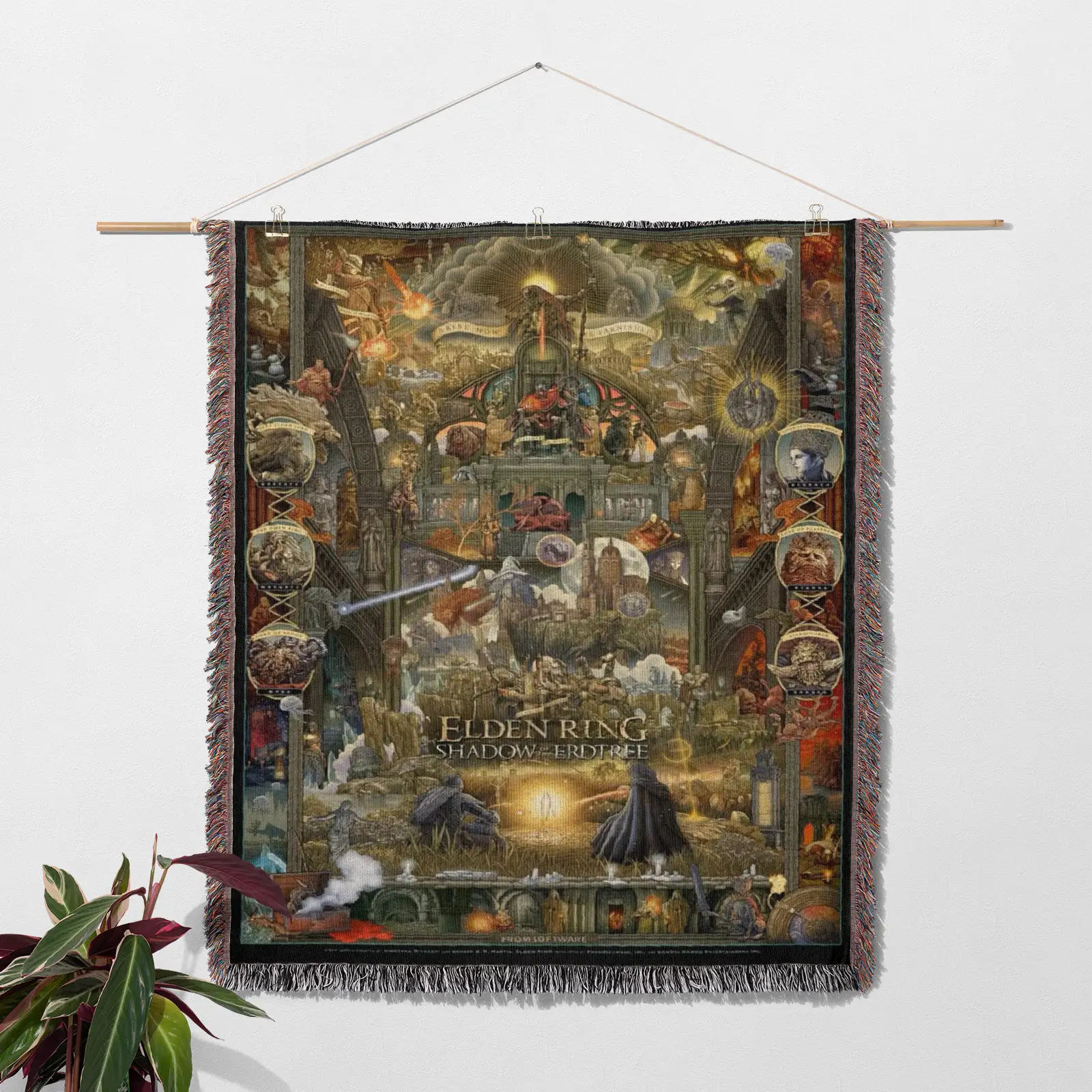Elden Retro Pixel Woven Tapestry Throw Blanket – Collectible Wall Rug, Room Decor, Home Decor
