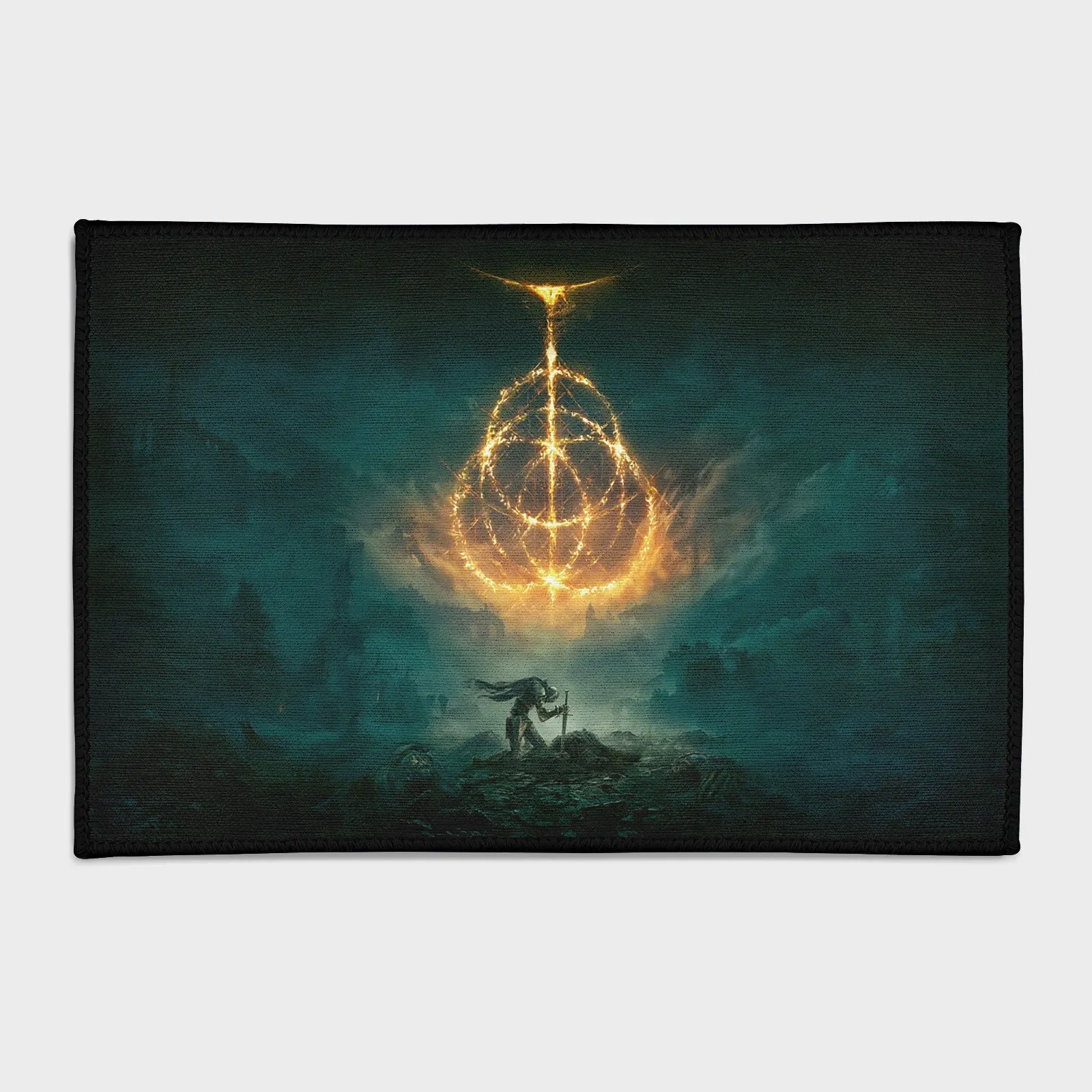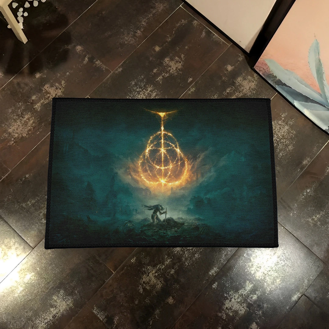 The Elden Ring Rug brings the mystical world of Elden Ring to life with elegant fantasy artwork, perfect for otaku bedrooms and fans of the Tarnished.