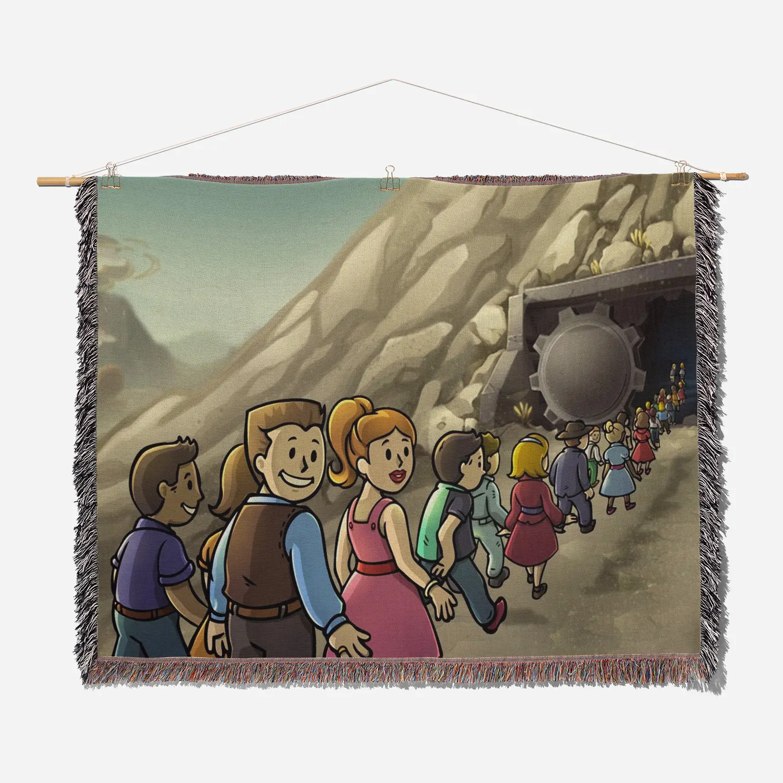 Enhance your room with this Fallout Woven Tapestry Throw Blanket. Crafted from 100% cotton yarn, its epic woven patterns make it perfect as a wall rug, room decor, or home decor accent for Fallout fans.