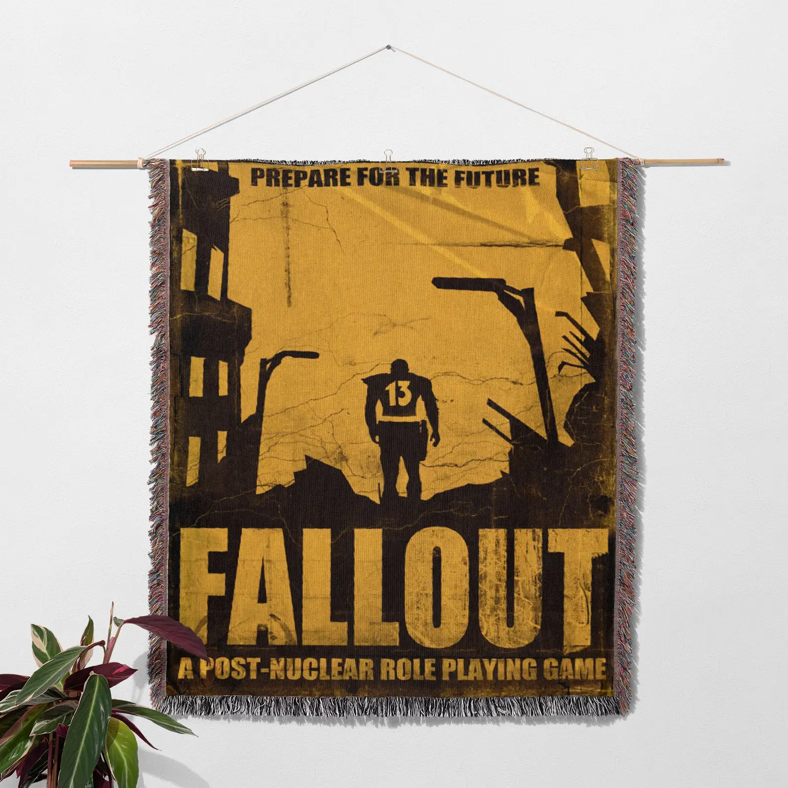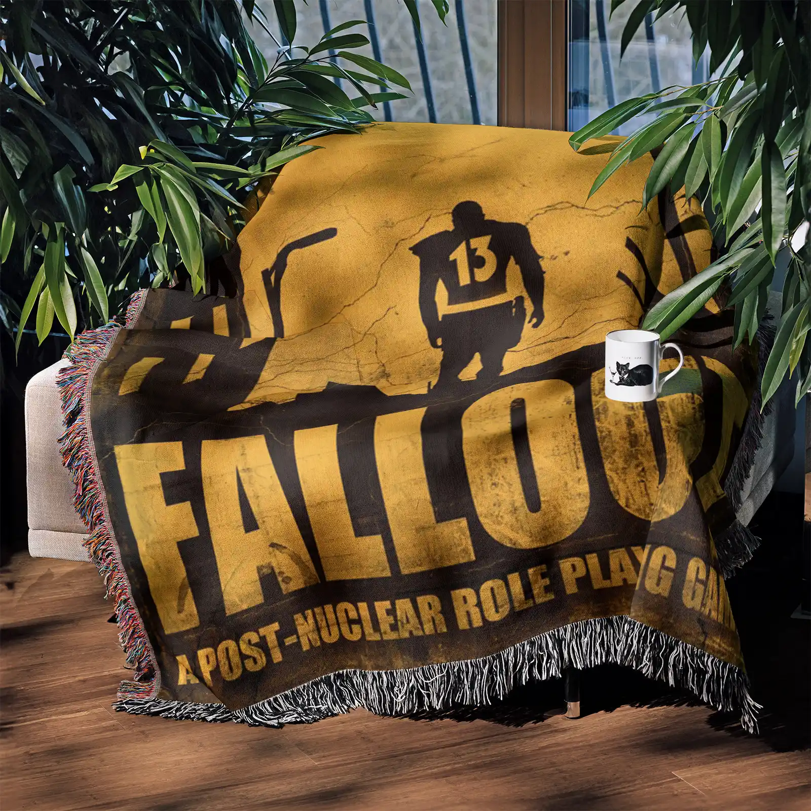 Bring stylish comfort to your space with this Fallout Woven Tapestry Throw Blanket. Crafted from 100% cotton yarn, its woven patterns make it perfect as stylish home decor, wall art, room decor, or collectible merch.