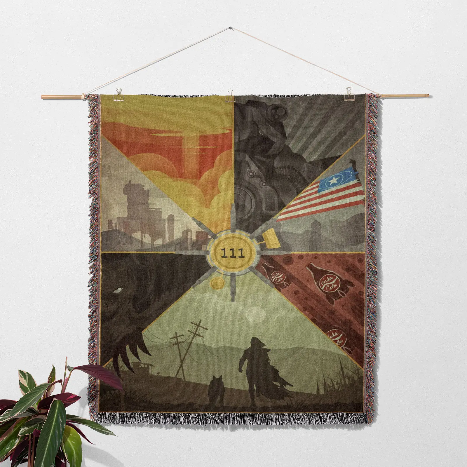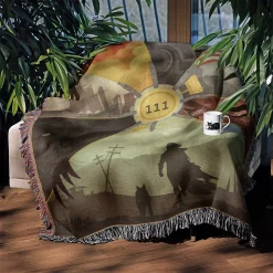 Add post-apocalyptic style to your room with this Fallout Woven Tapestry Throw Blanket. Made from 100% cotton yarn, its woven patterns make it perfect as a wall rug, room decor, or collectible merch for Fallout fans.