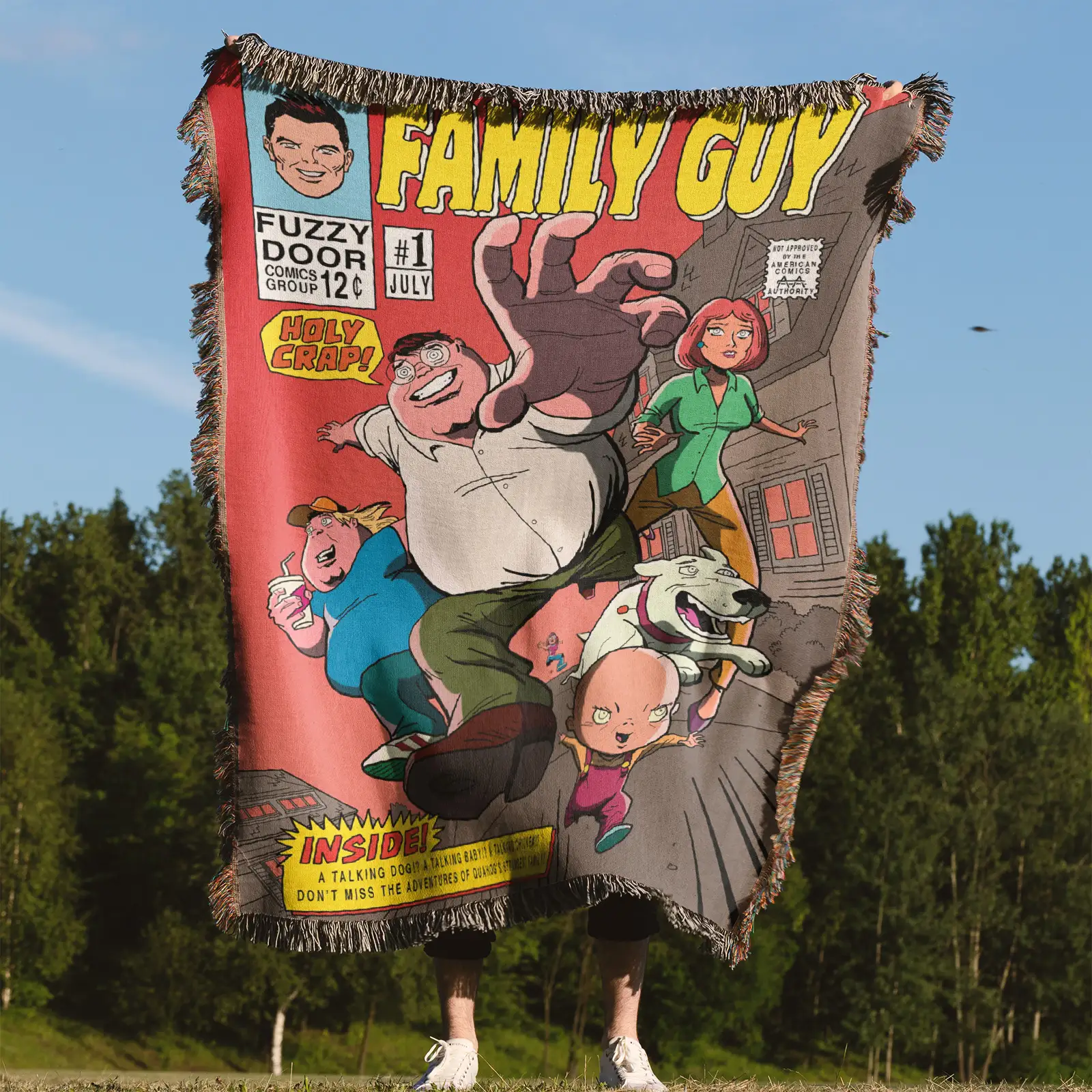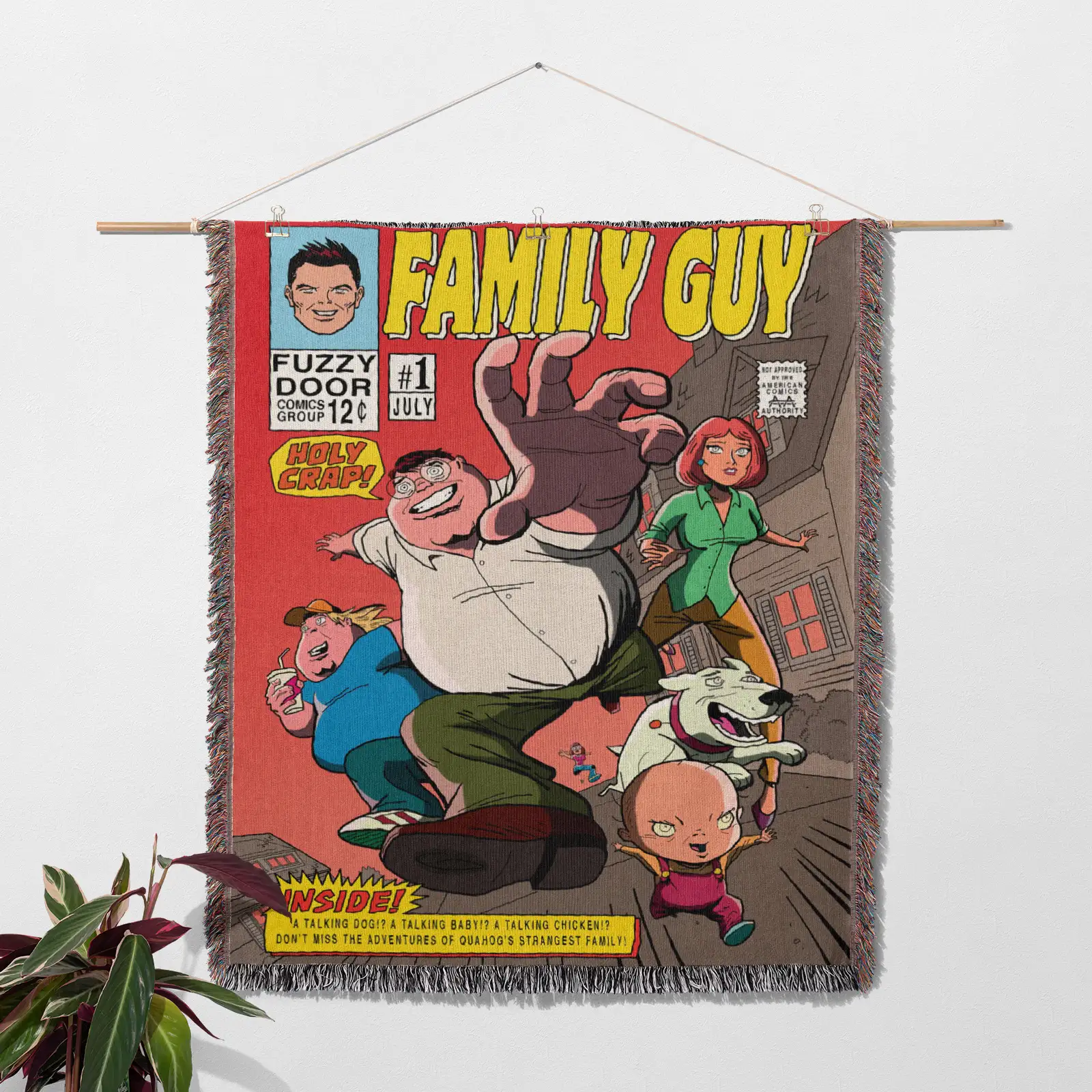 Celebrate vintage moments with this Family Guy Comic Cover Woven Tapestry Throw Blanket – Vintage Wall Rug, Home Decor, Cool Collectible. Crafted from 100% cotton yarn with rich woven patterns, ideal as wall tapestry, throw blanket, or decorative accent for Family Guy fans.