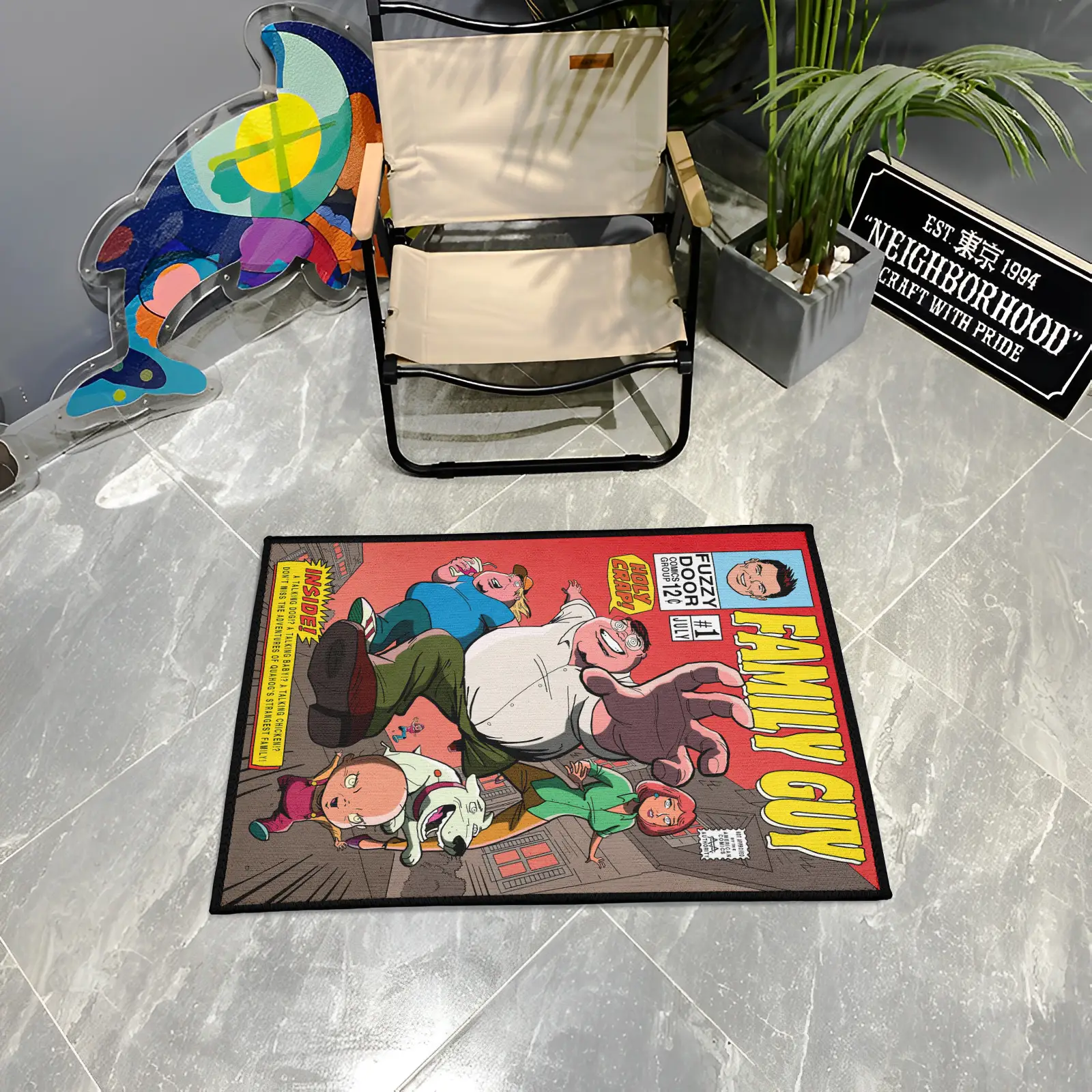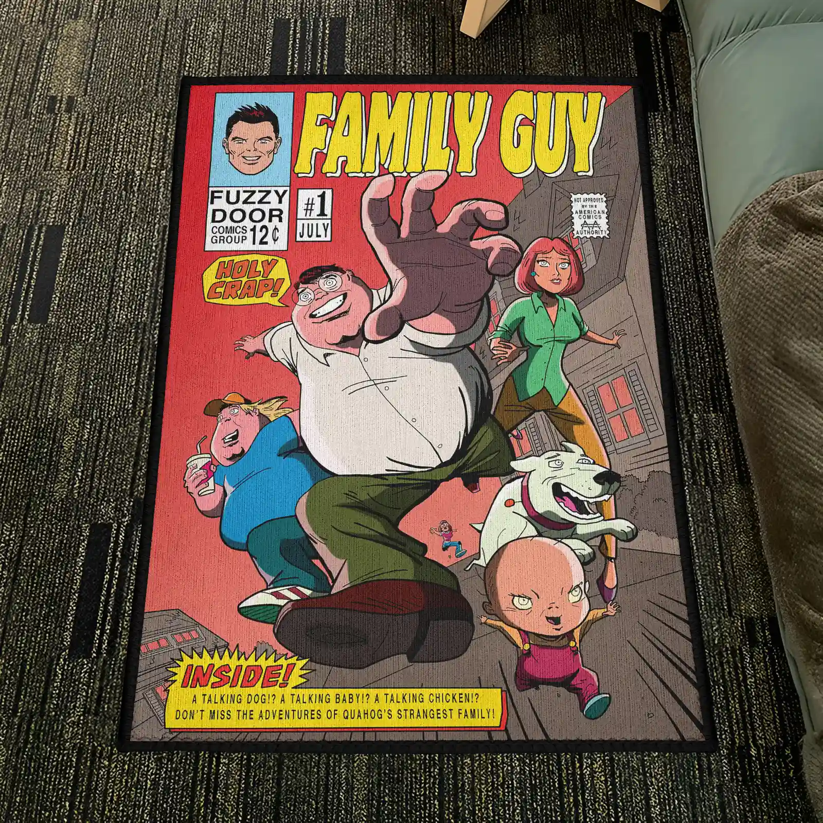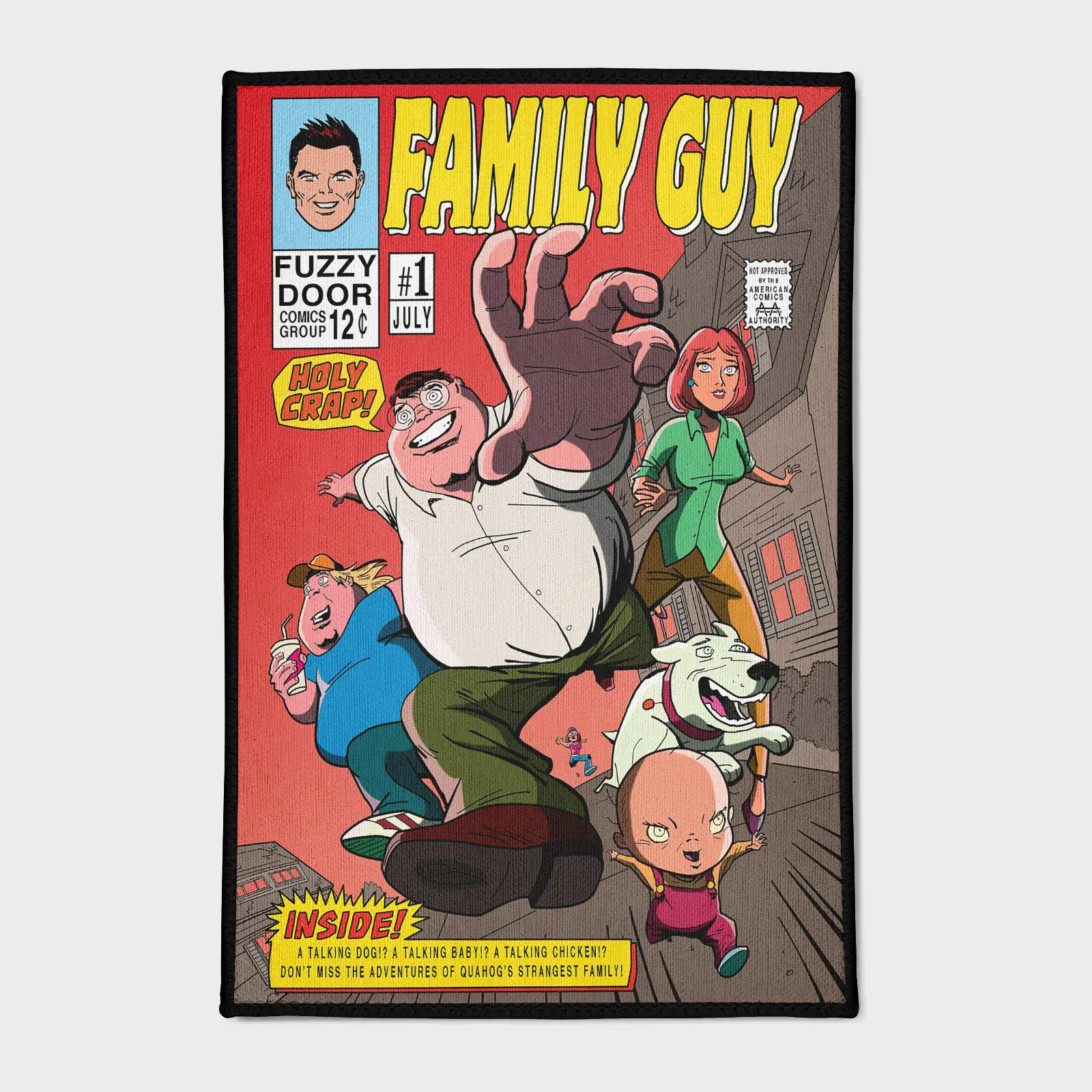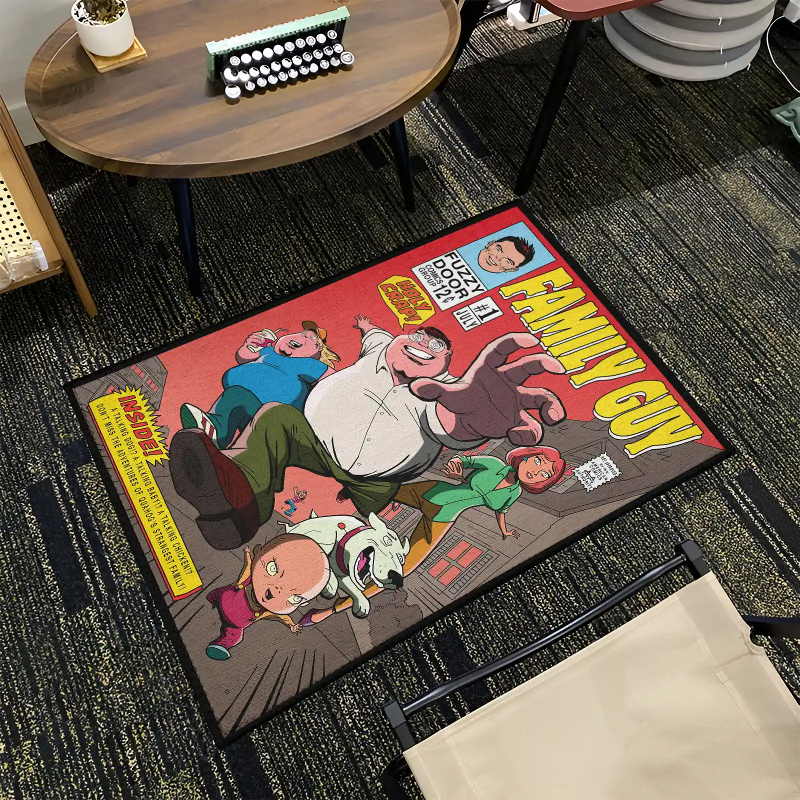 The Family Guy Comic Cover Rug features stylized comic art of Peter, Stewie, and the Griffin family. Perfect for cartoon lovers and collectors looking for quirky room decor or fun floor mats.