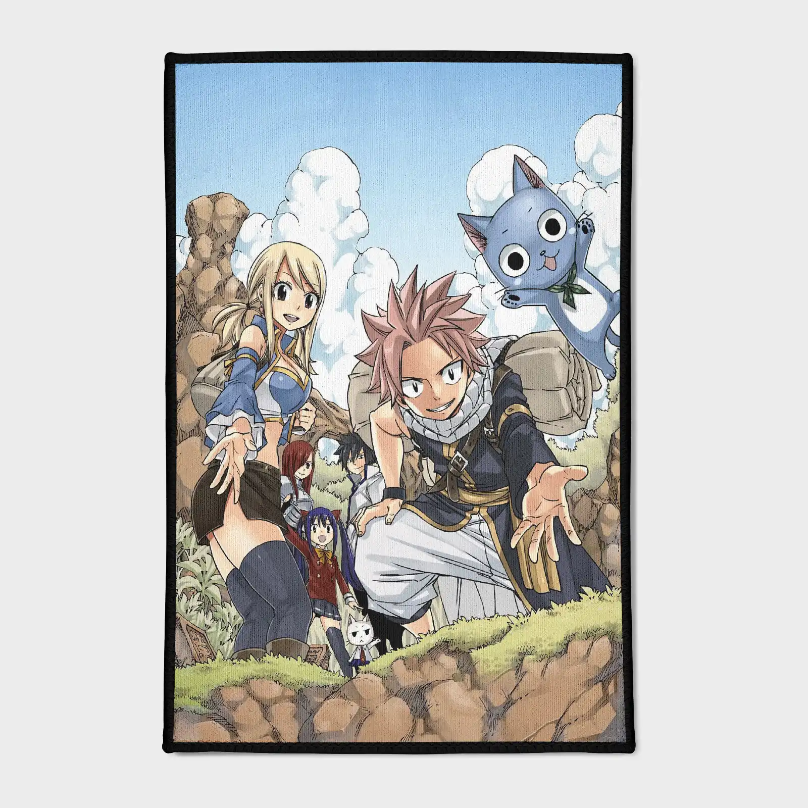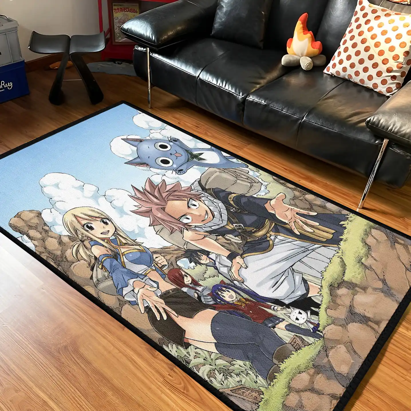 The FT Anime Art Area Rug brings vibrant Fairy Tail anime art to bedrooms or gaming setups. Durable, stylish, and perfect for fans.