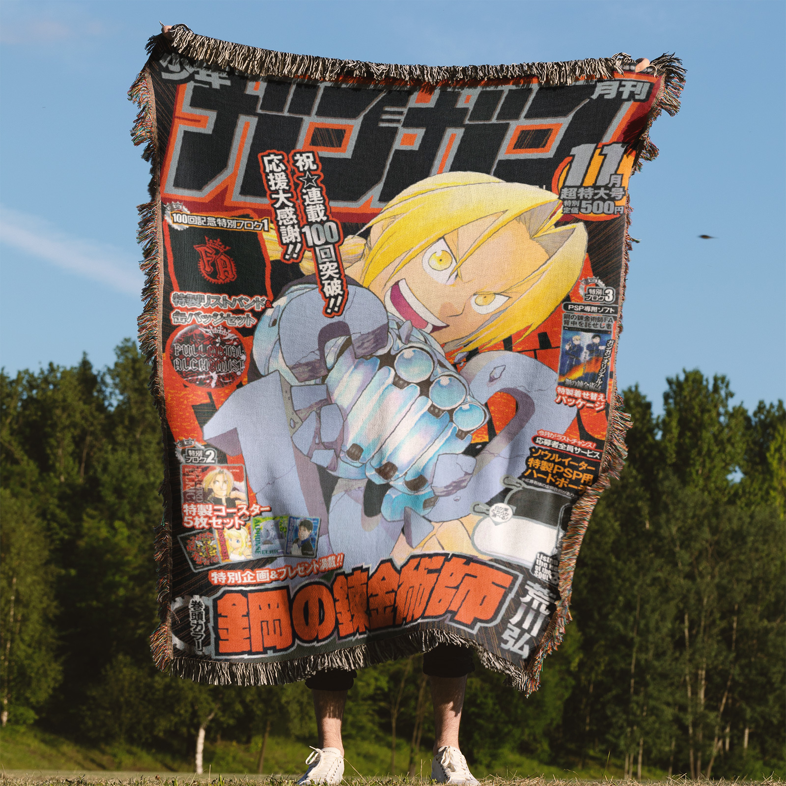 FA Manga Cover Anime Woven Tapestry Throw Blanket – Iconic Wall Art, Room & Home Decor, Perfect Gift