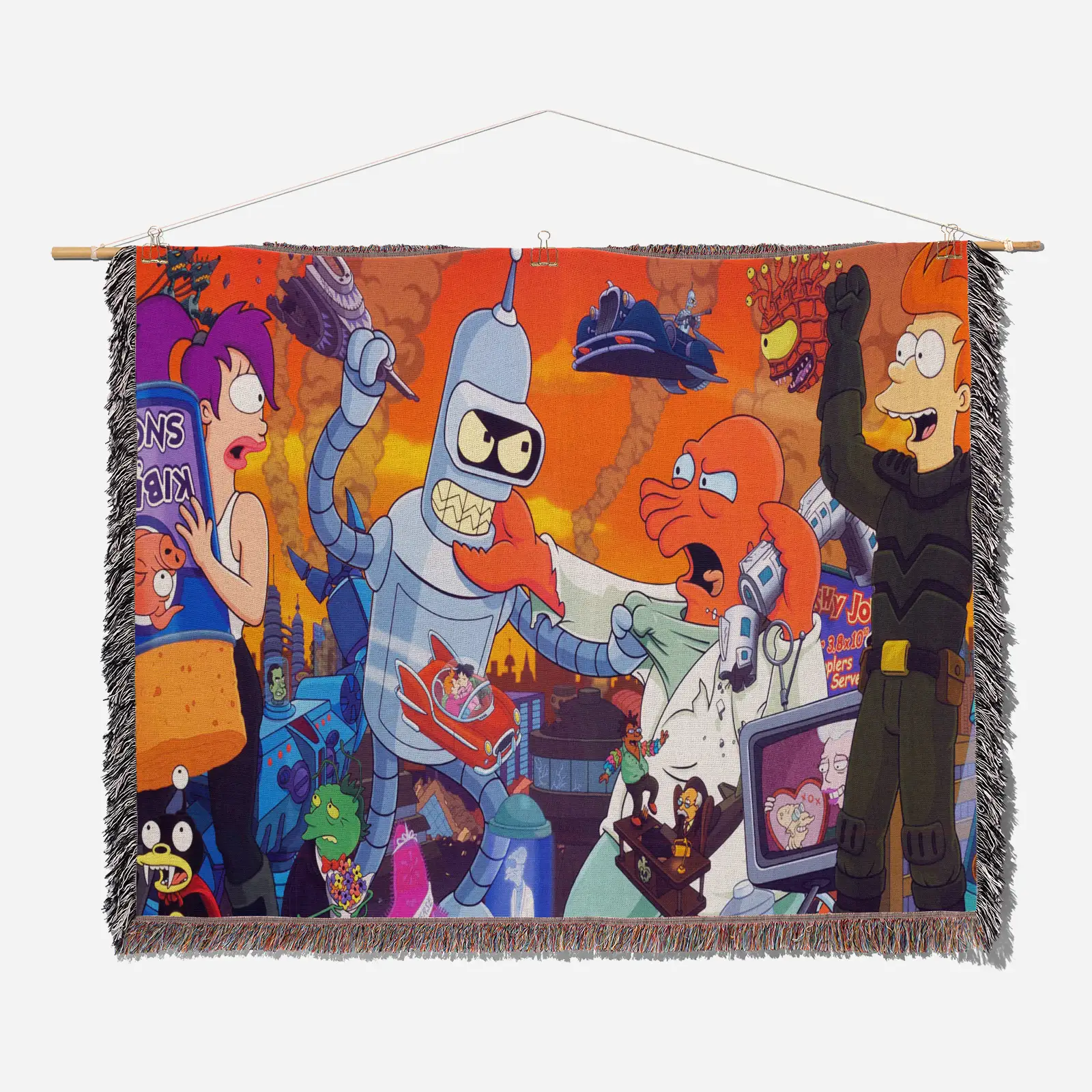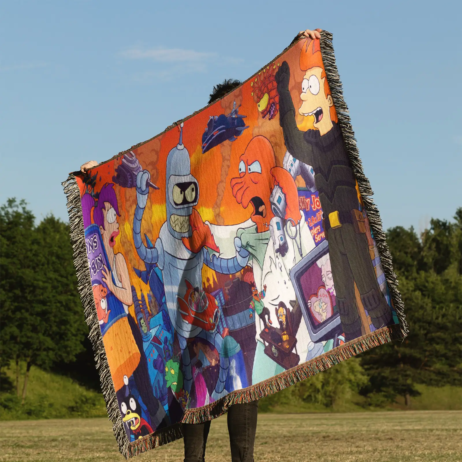Stylize your home with this Futurama Woven Tapestry Throw Blanket – Unique Wall Rug, Cozy Room Decor, Perfect Gift. Made from 100% cotton yarn with rich woven patterns, perfect as wall tapestry, throw blanket, or decorative accent.