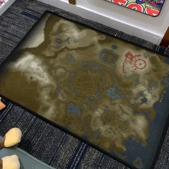 The Tears of the Kingdom Map Rug features a detailed layout of Hyrule from the latest Zelda adventure. This epic floor mat brings exploration vibes and fantasy energy into your gaming room, bedroom, or collector's space—perfect for any Zelda fan.Product Features