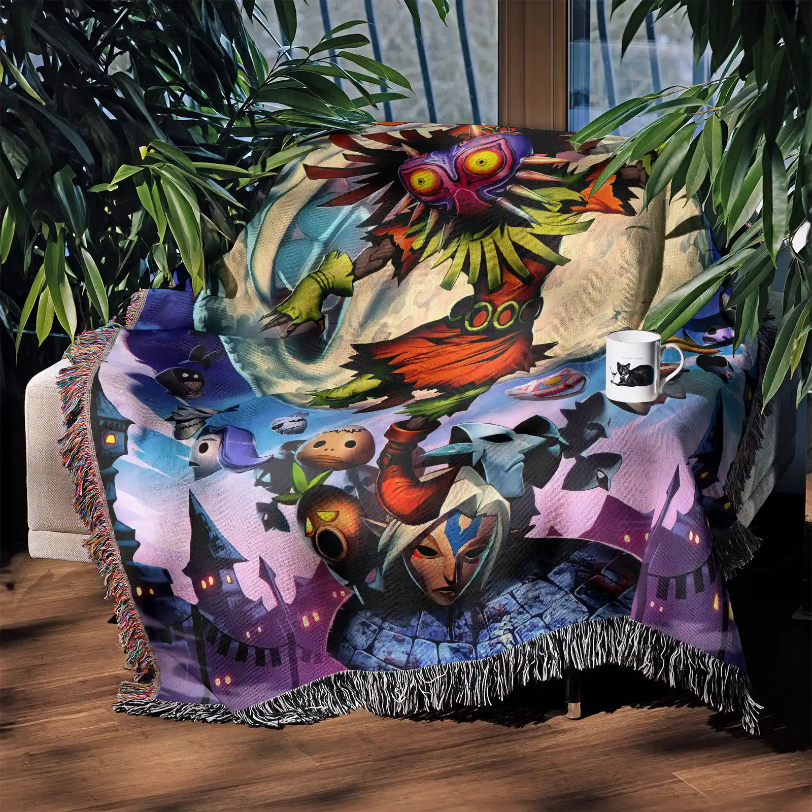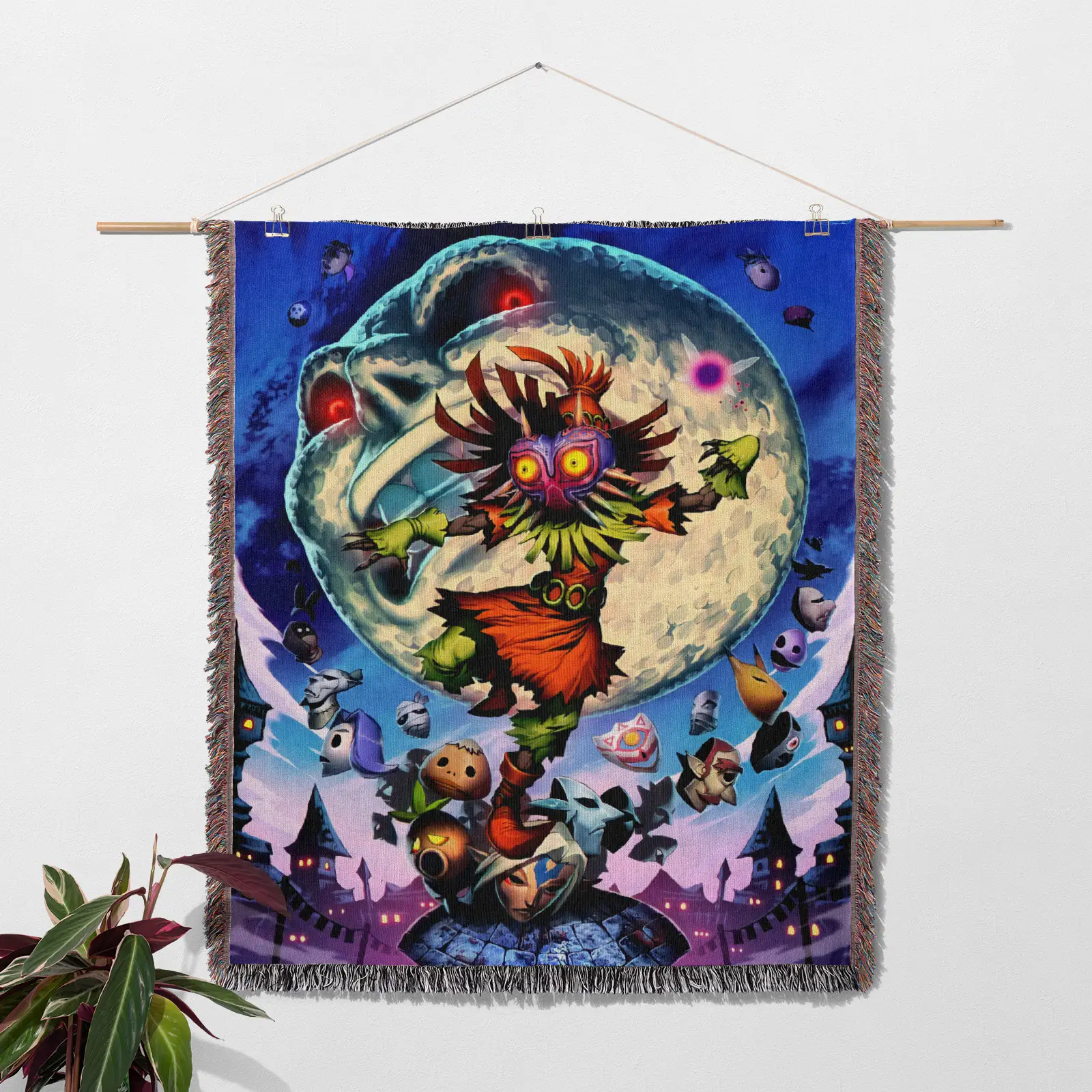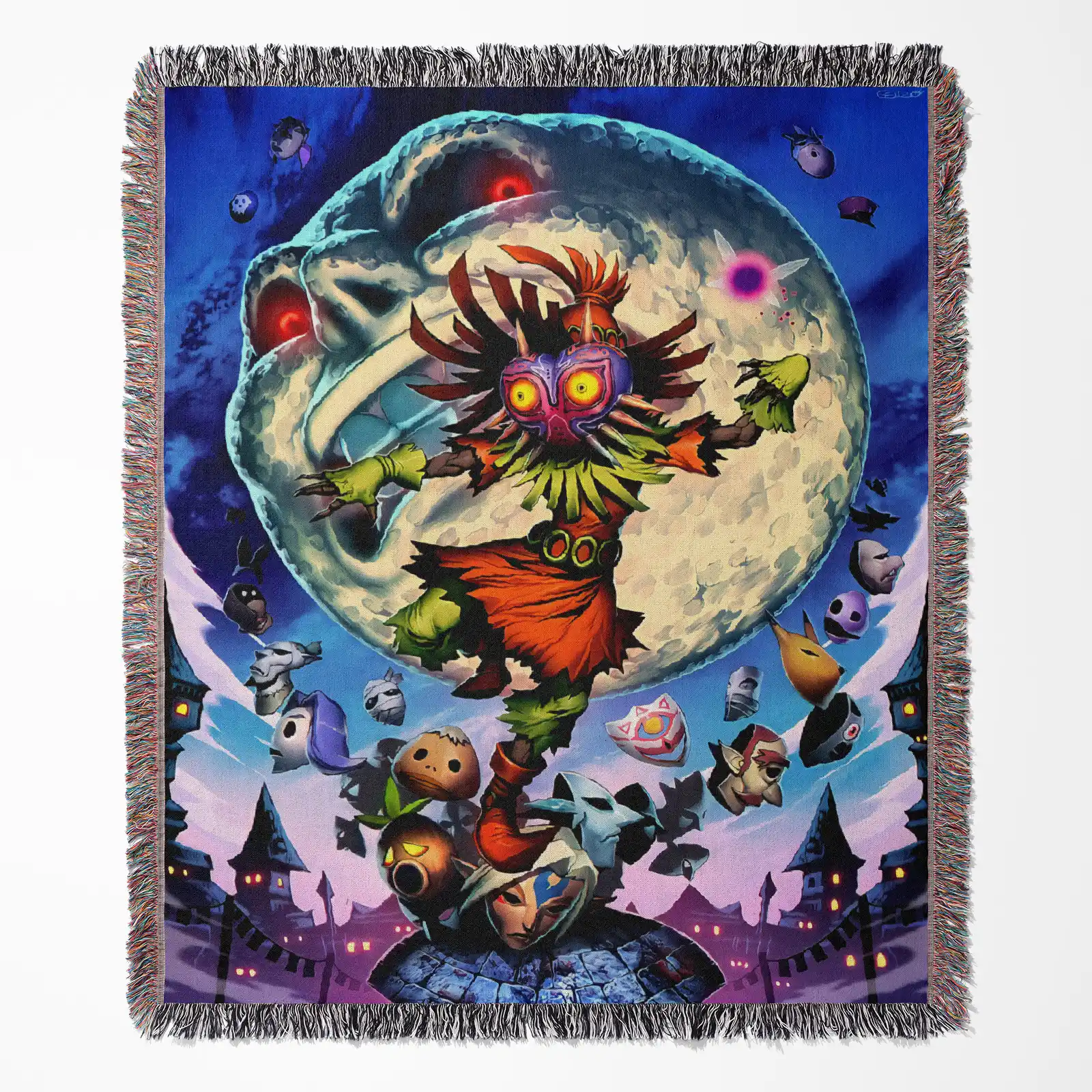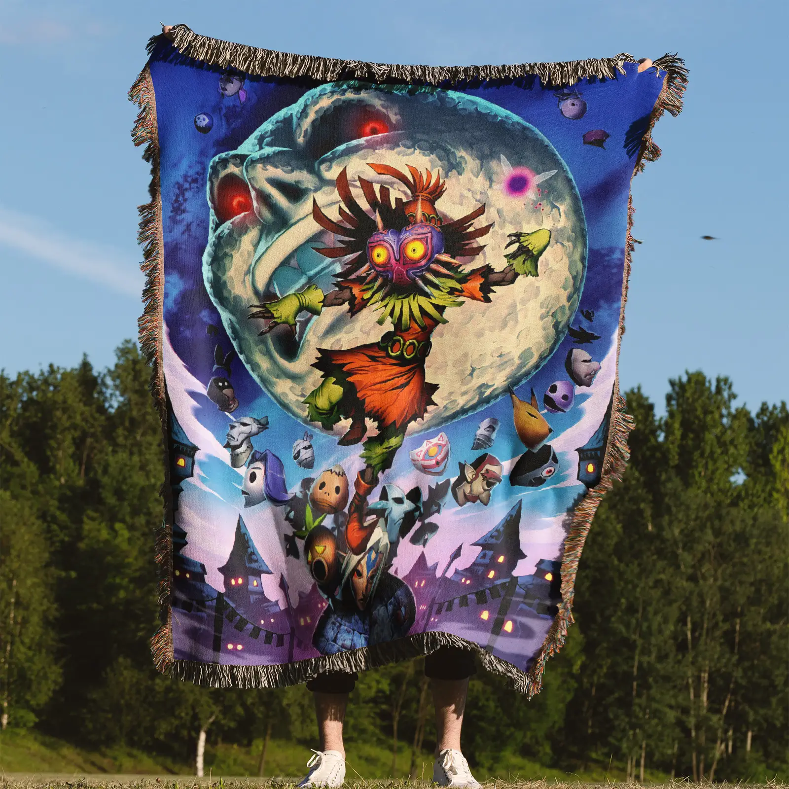 Zelda Majora’s Mask Woven Tapestry Throw Blanket – Fun Wall Art, Room Decor, Picnic Mat, Cozy Home Decor