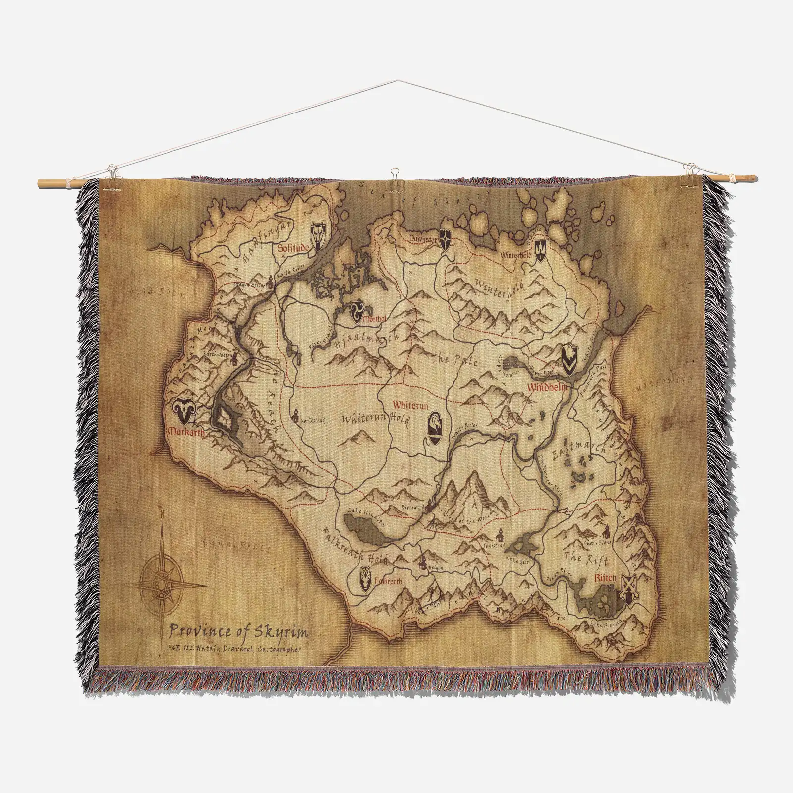 Skyrim Map Woven Tapestry Throw Blanket – Fun Wall Art, Room Decor, Picnic Mat, Cozy Home Decor