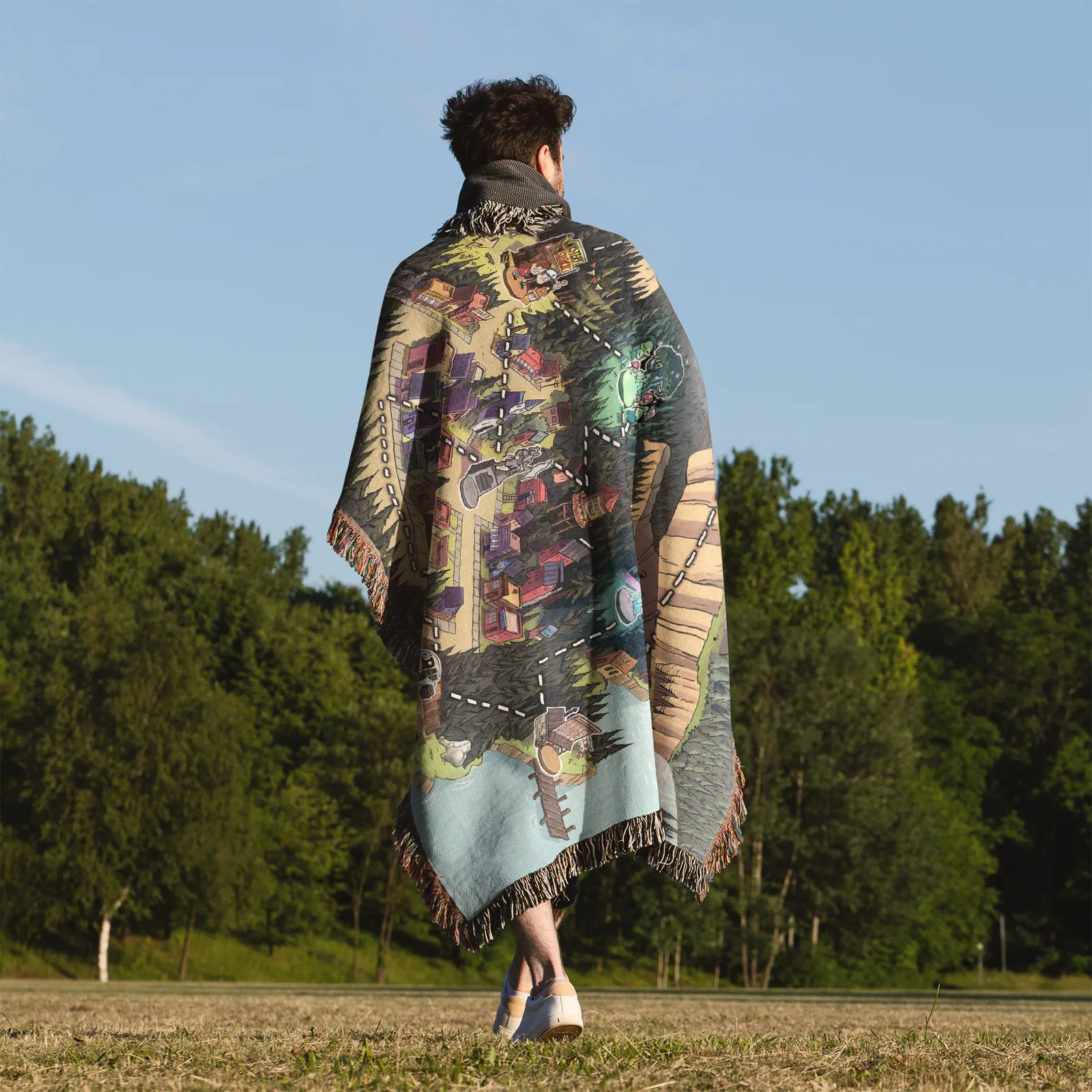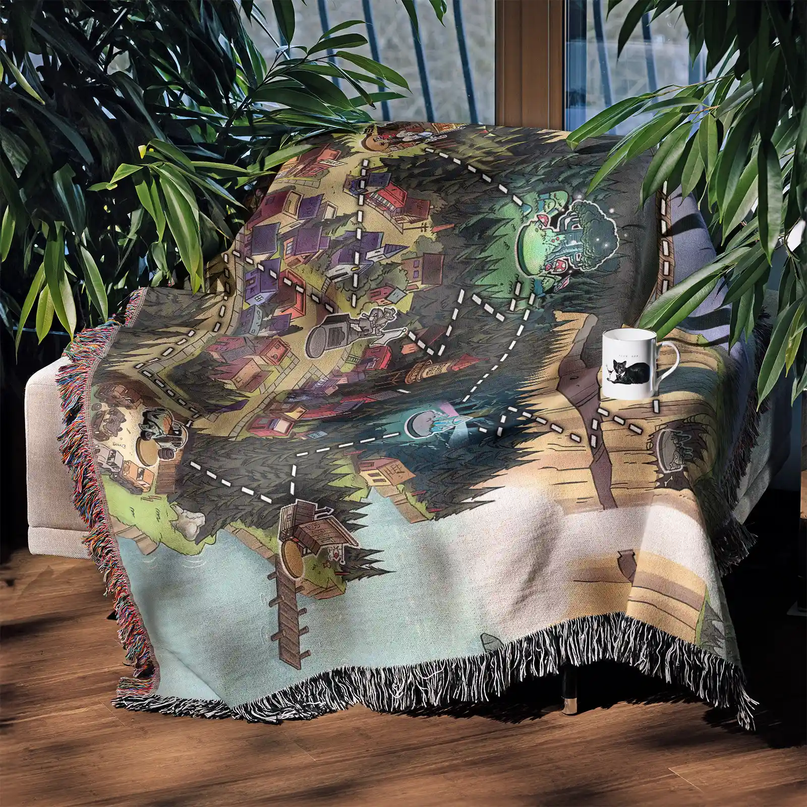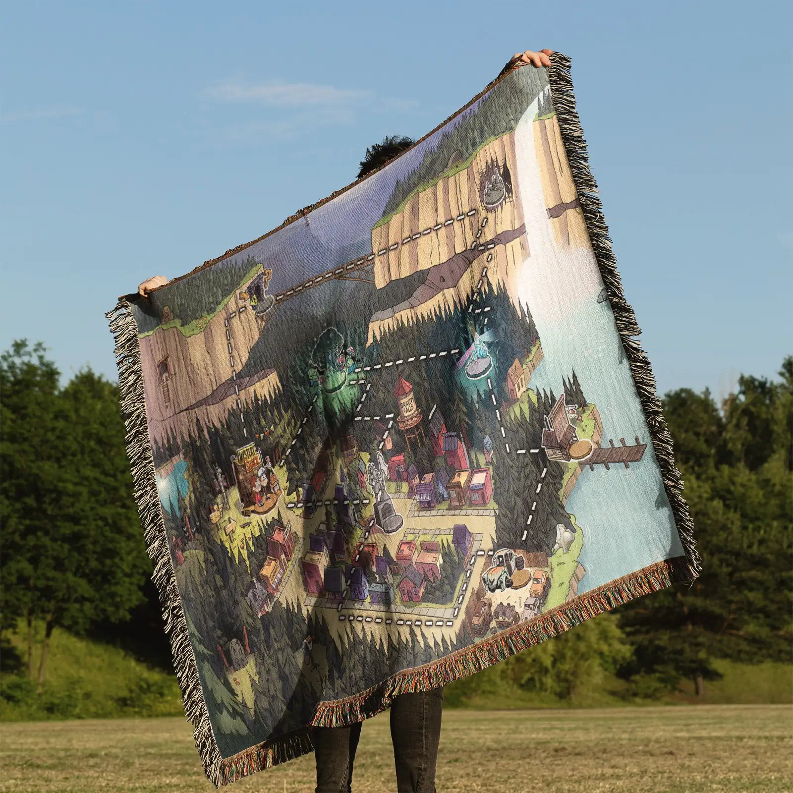 Gravity Town Map Woven Tapestry Throw Blanket – Vintage Wall Art, Cozy Room Decor, Perfect Gift