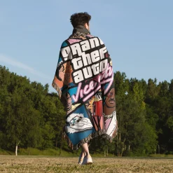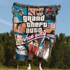 Step into the world of Vice City with this GTA Vice City Woven Tapestry Throw Blanket. Crafted from 100% cotton yarn, its epic woven patterns make it perfect as wall rug, cozy room decor, or home decor accent for GTA fans.
