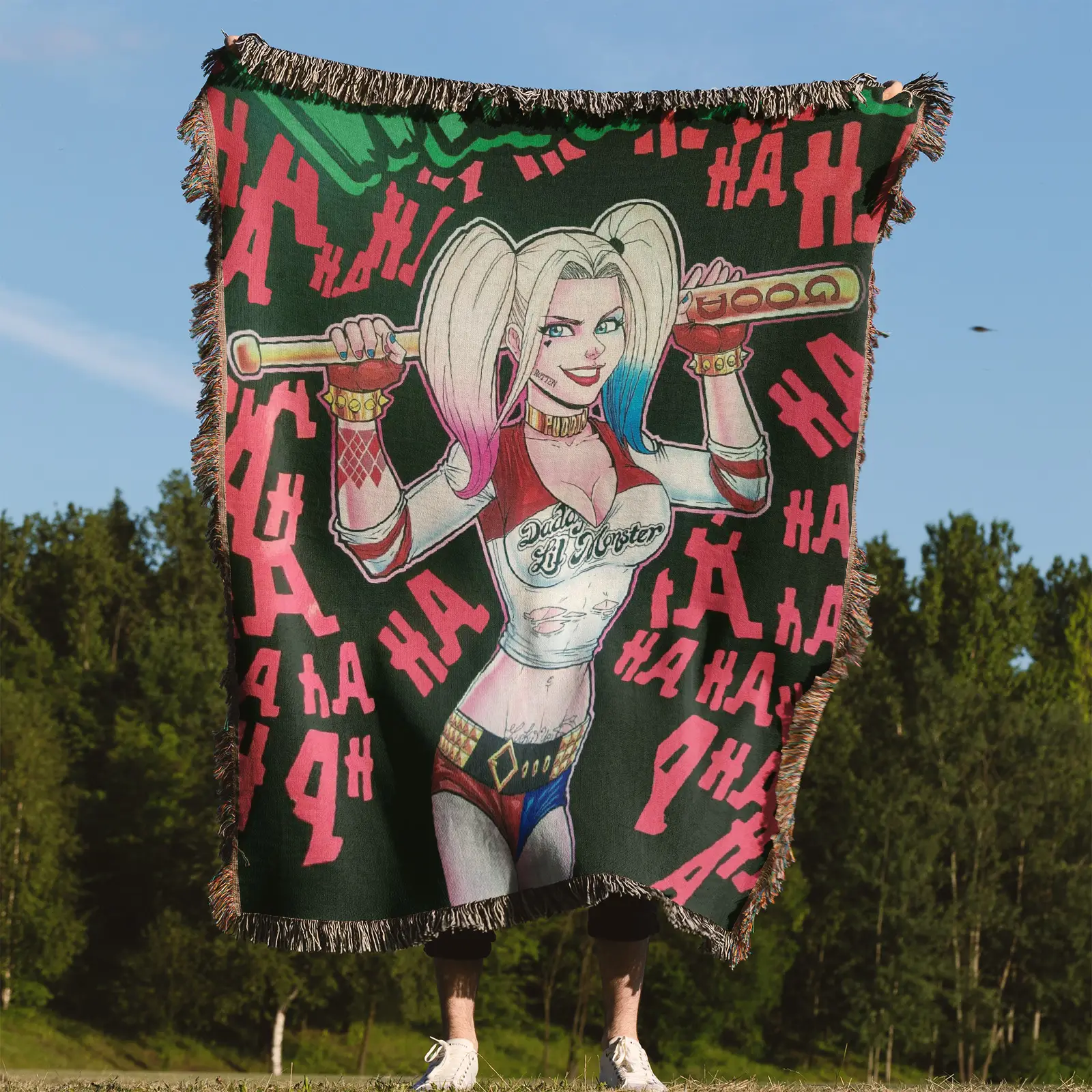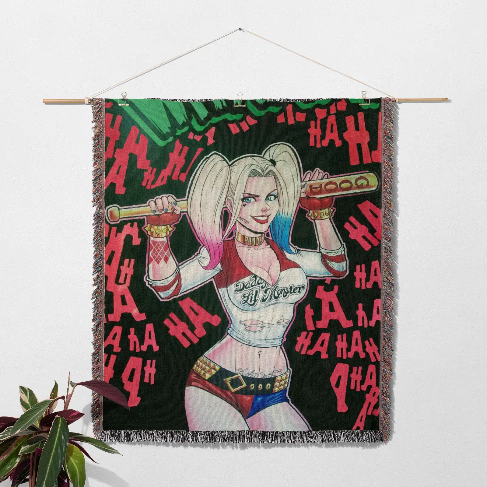 Light up your room with this Harley Quinn Woven Tapestry Throw Blanket – Bright Wall Art, Cozy Room Decor, Collectible Accent. Made with 100% cotton yarn and detailed woven patterns, perfect for walls, beds, or as a cozy throw blanket.