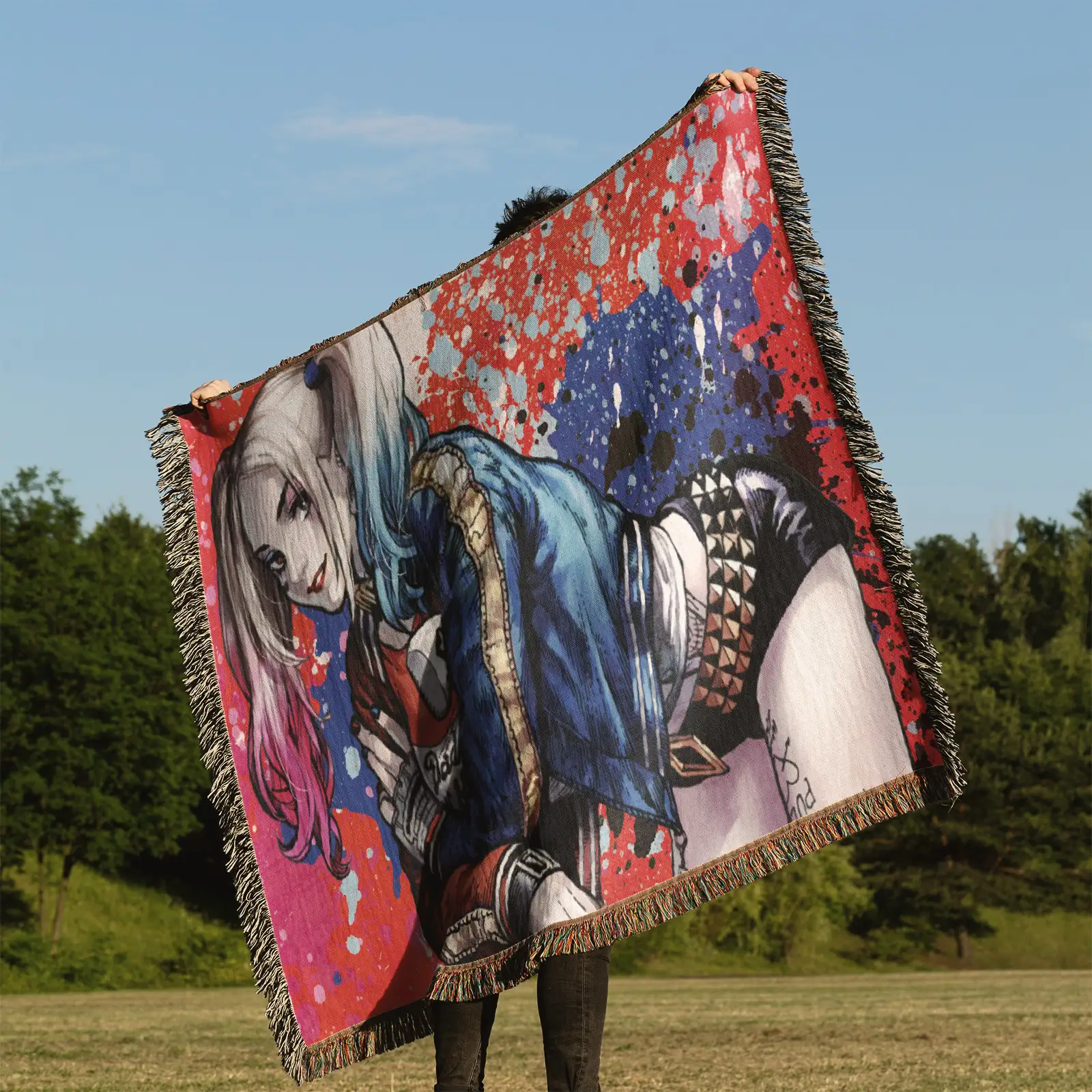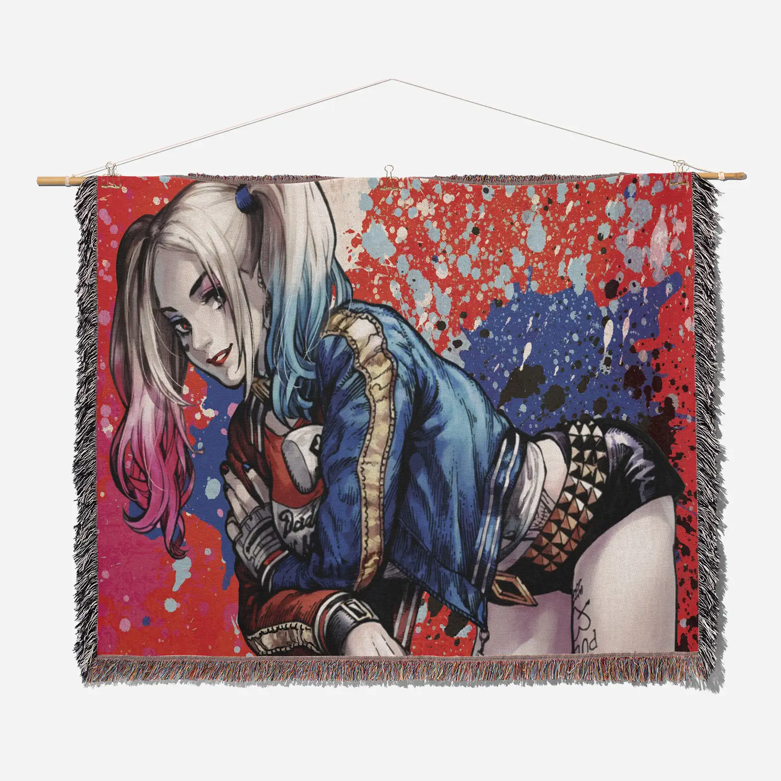 Add playful style with this Harley Quinn Woven Tapestry Throw Blanket – Fun Wall Art, Cool Room Decor, Collectible Merch. Crafted with 100% cotton yarn and detailed woven patterns, perfect as wall tapestry, bed blanket, throw, or decorative accent.