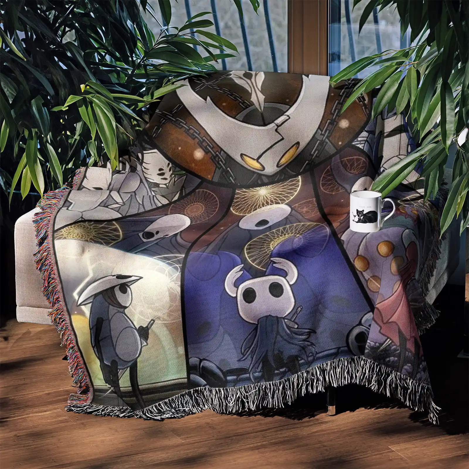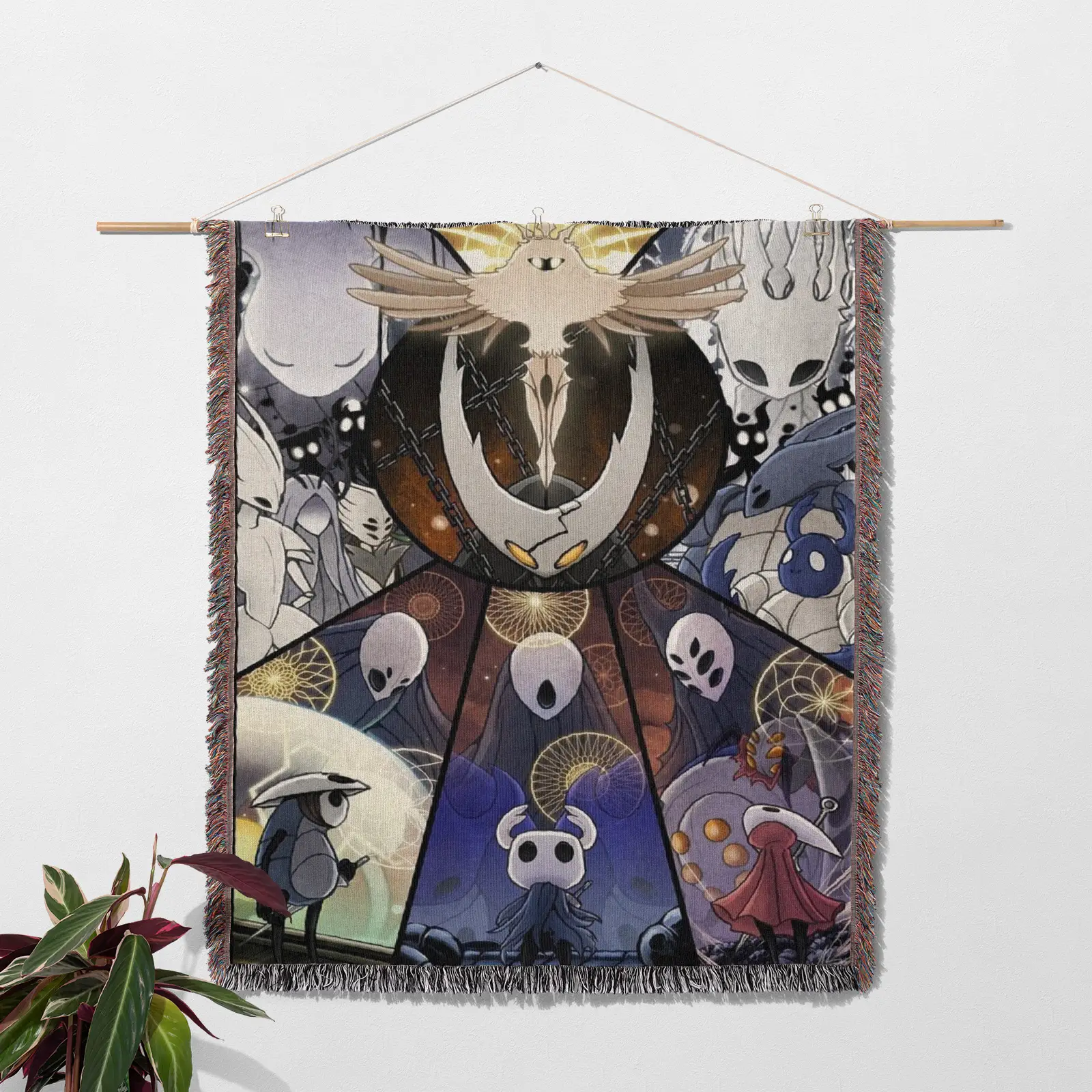 Bring retro vibes into your space with this Hollow Knight Retro Woven Tapestry Throw Blanket. Made from 100% cotton yarn, its stylish woven patterns make it perfect as wall rug, room decor, or collectible merch.